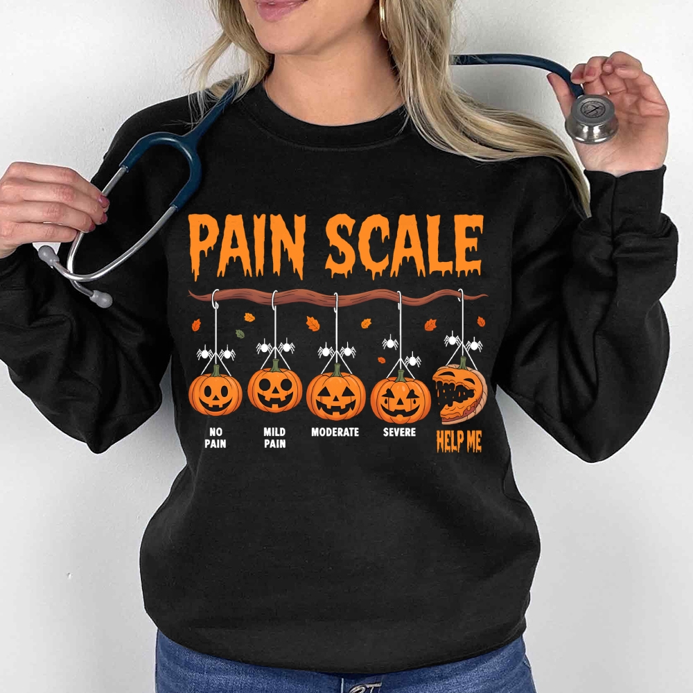 Spooky Pumpkin Pain Scale Trauma Nurse Triage Halloween Cotton Pullover Sweatshirt