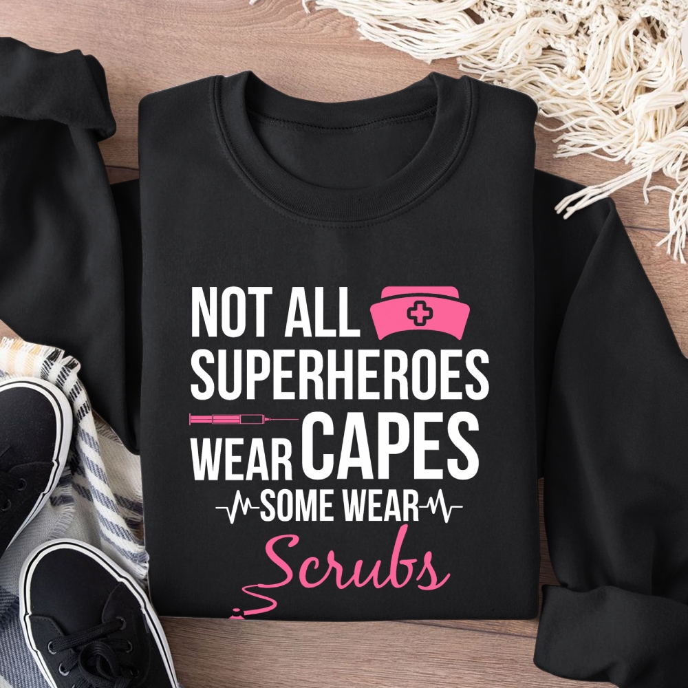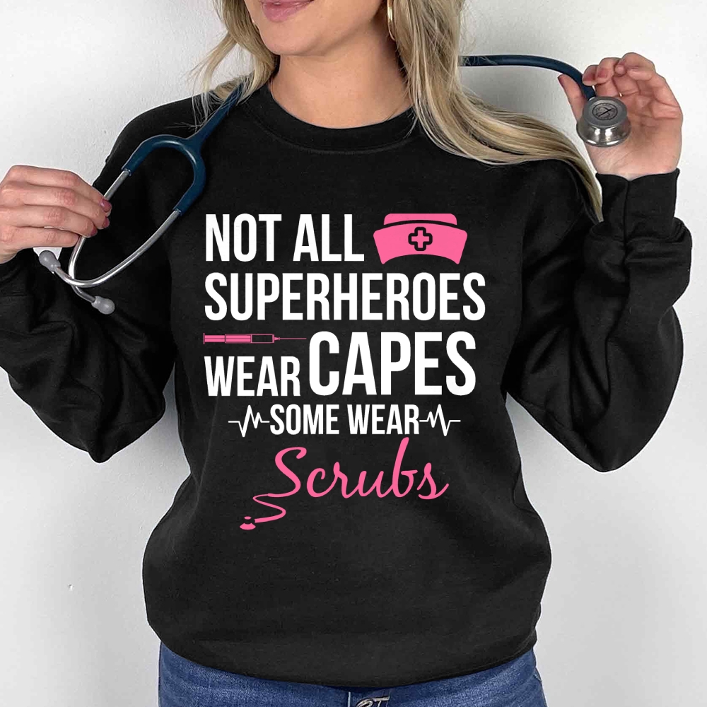Not All Superheroes Wear Capes Some Wear Scrubs Cotton Pullover Sweatshirt