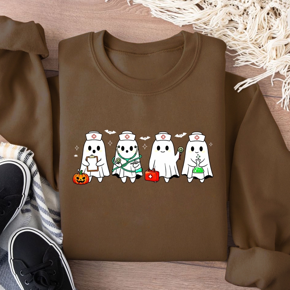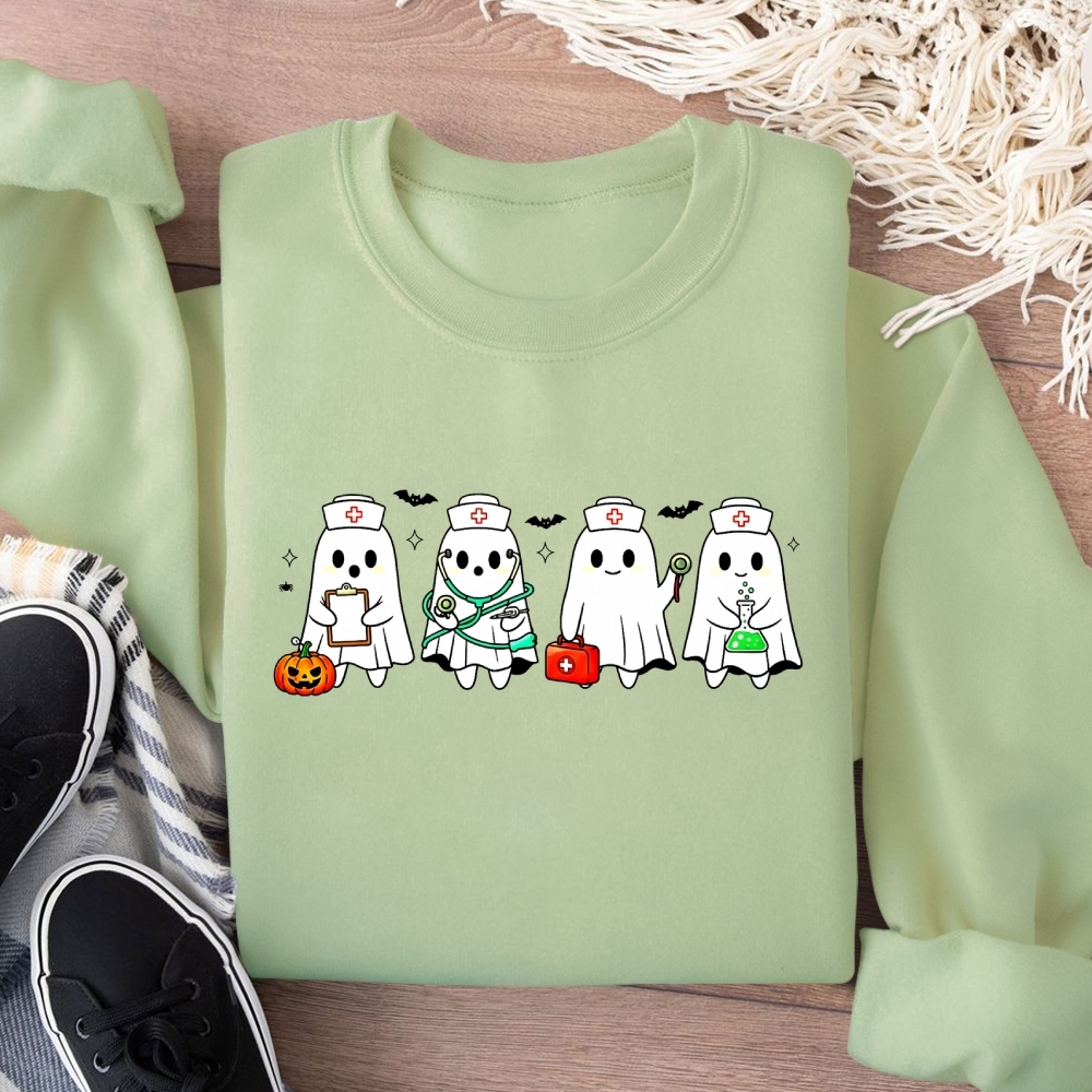 Spooky Cute Nurse Halloween Cotton Pullover Sweatshirt
