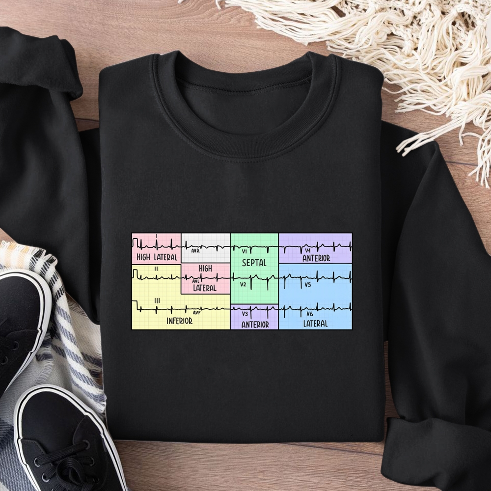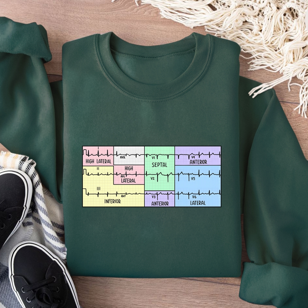 Hand Drawn 12 Lead Electrocardiogram ECG Pastel Cotton Pullover Sweatshirt