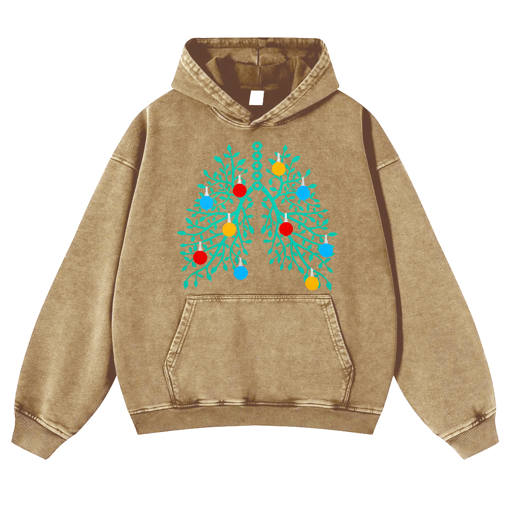 Lungs With Christmas Lights Respiratory Therapist Xmas Vintage Washed Hoodie