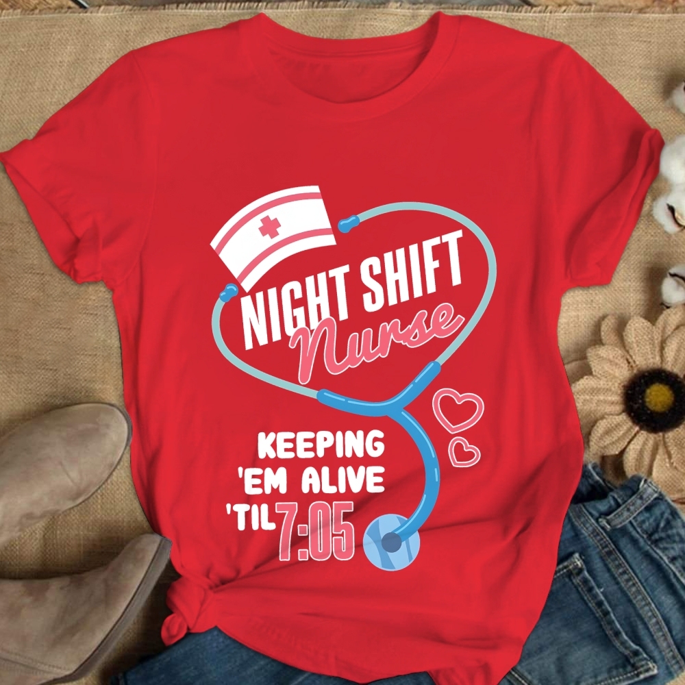Night Shift Nurse Keep Em Alive Till 7:05 Cotton Nurse T-shirt