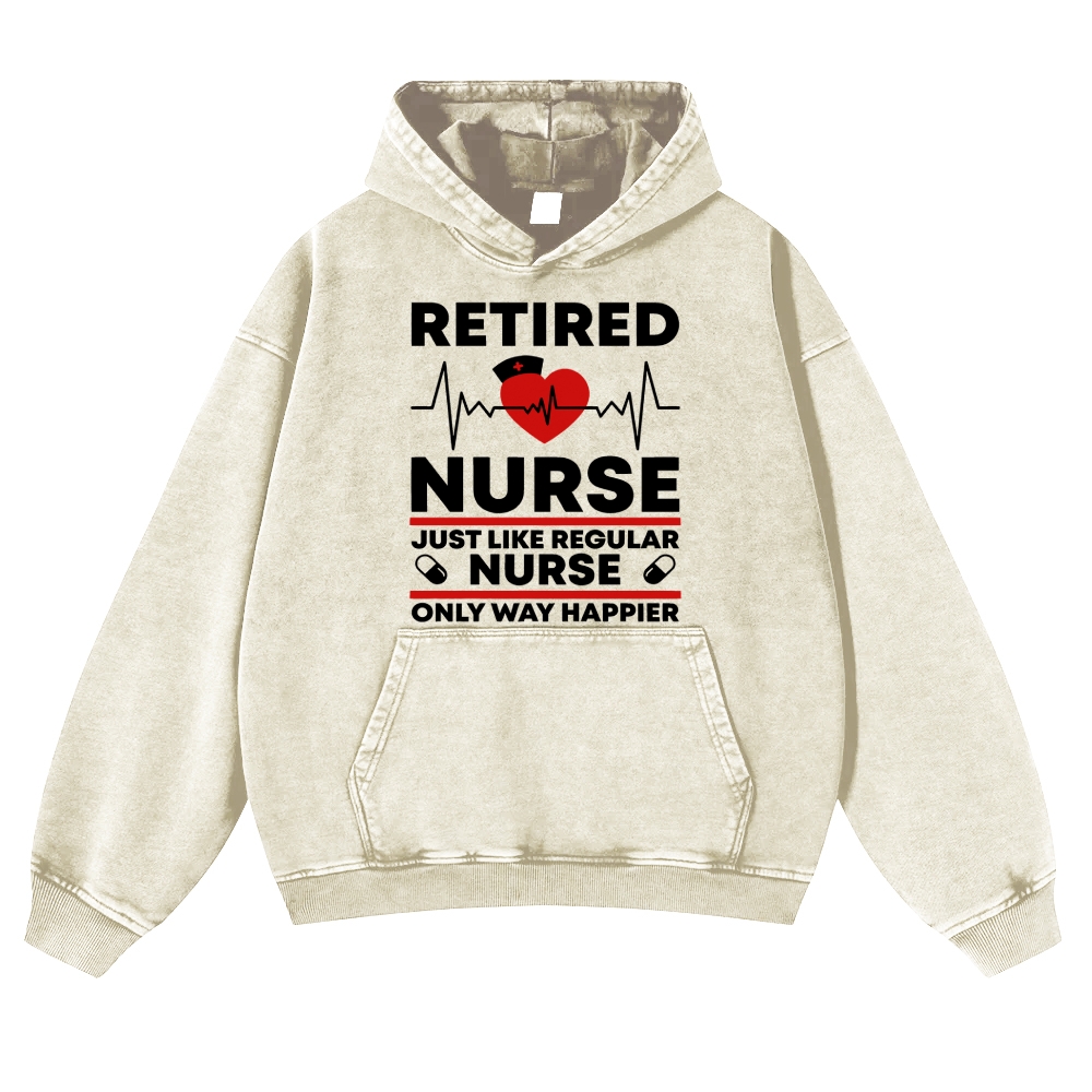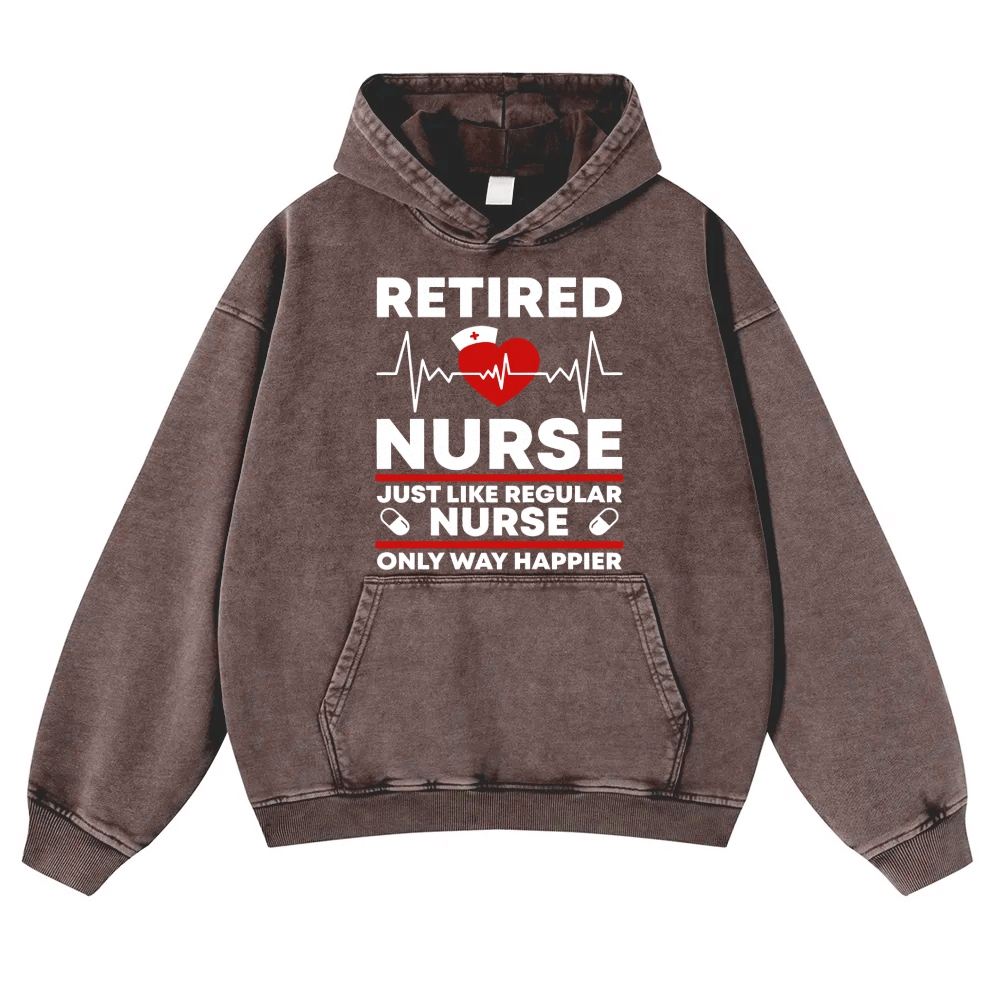 Retired Nurse Way Happier Vintage Washed Hoodie