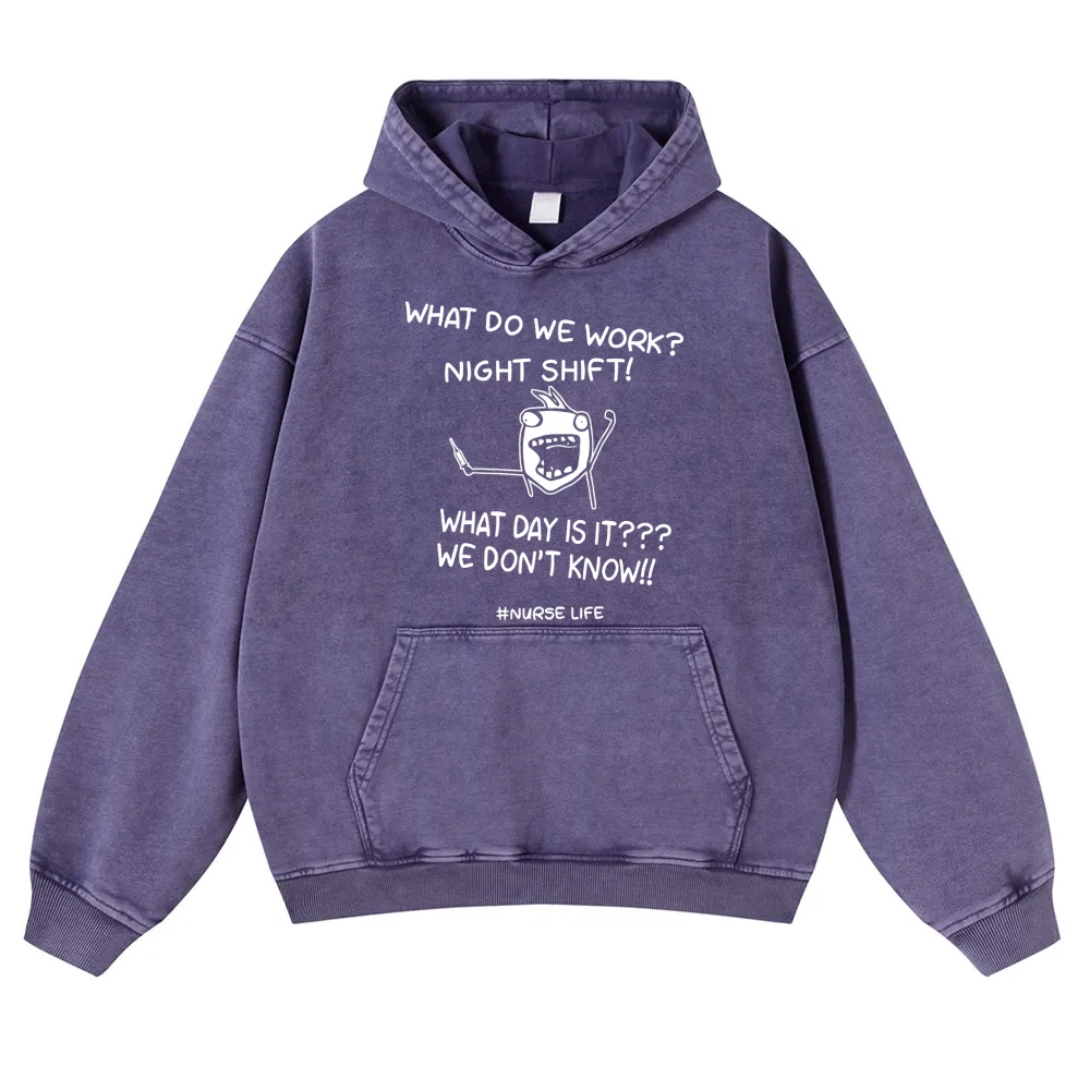 What Do We Work-Night Shift What Day Is It-We Don't Know Vintage Washed Hoodie