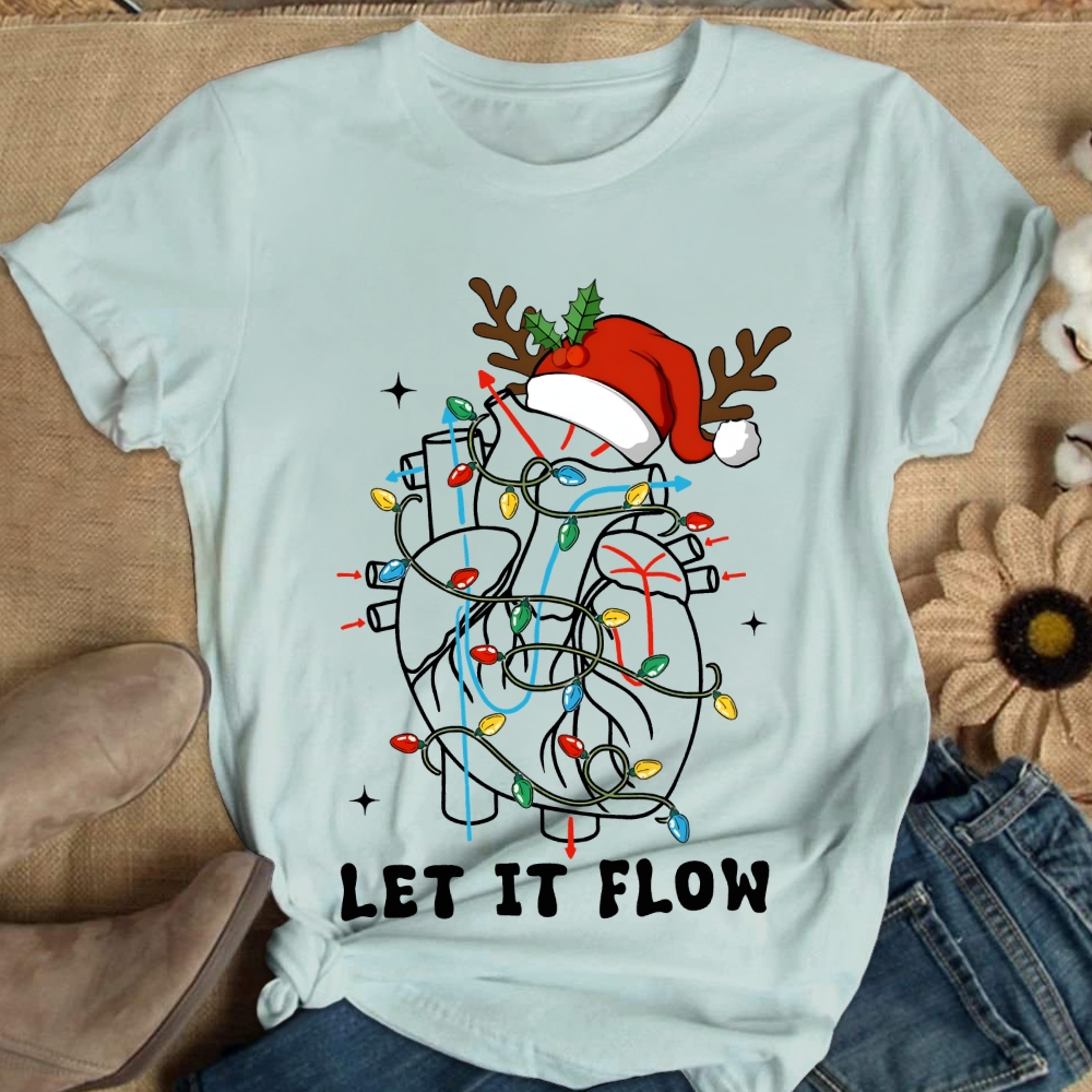 Let It Flow Heart Anatomy Cotton Nurse T-shirt