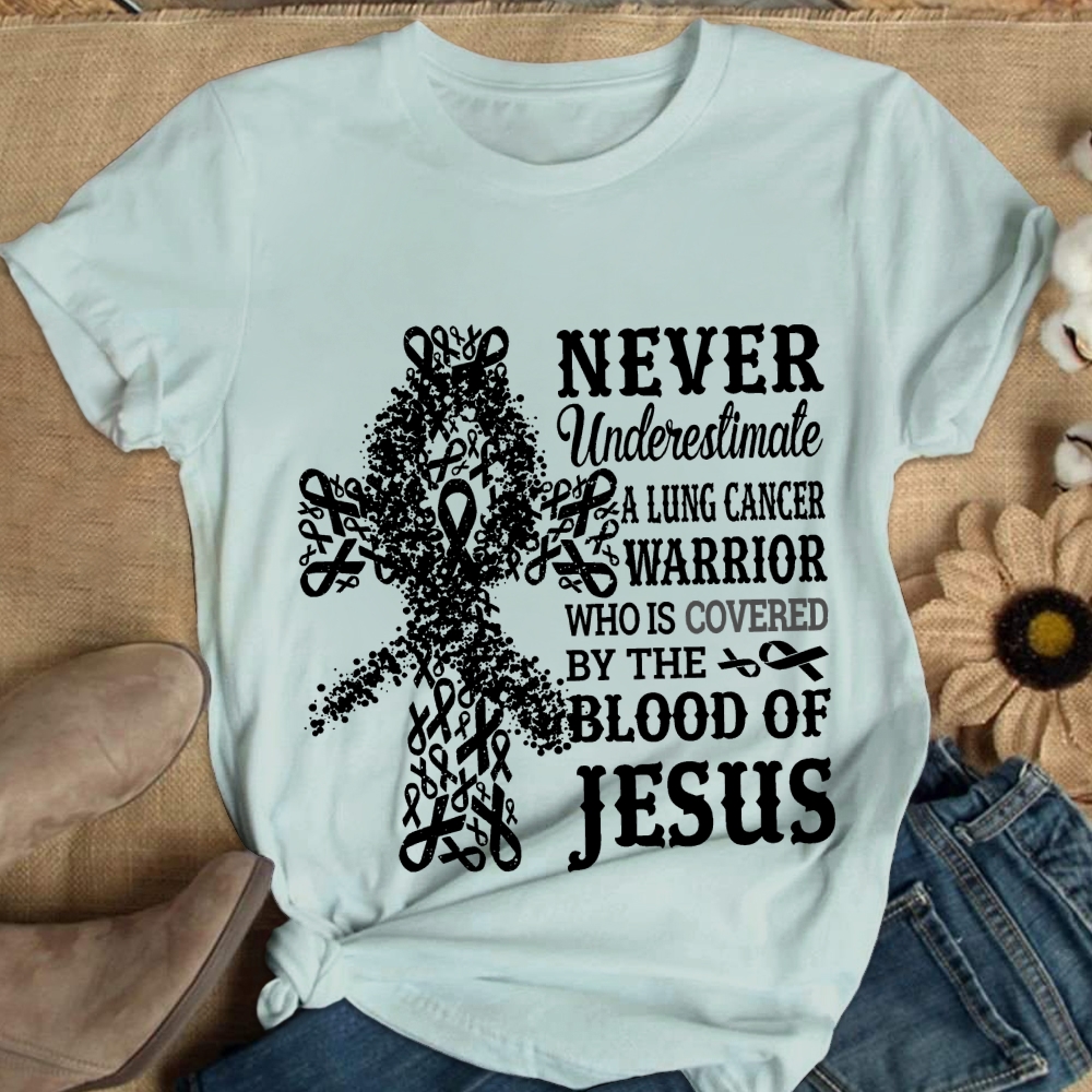 Never Underestimate A Lung Cancer Warrior Covered By The Blood Of Jesus Cotton Nurse T-shirt