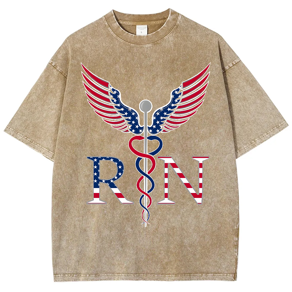 Registered Nurse Caduceus Symbol Independence Day Vintage Washed T-shirt