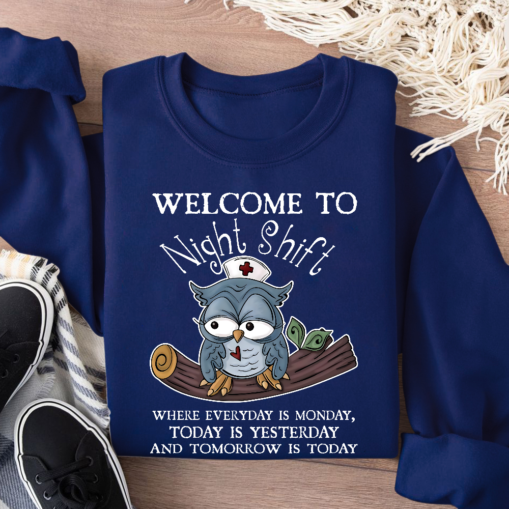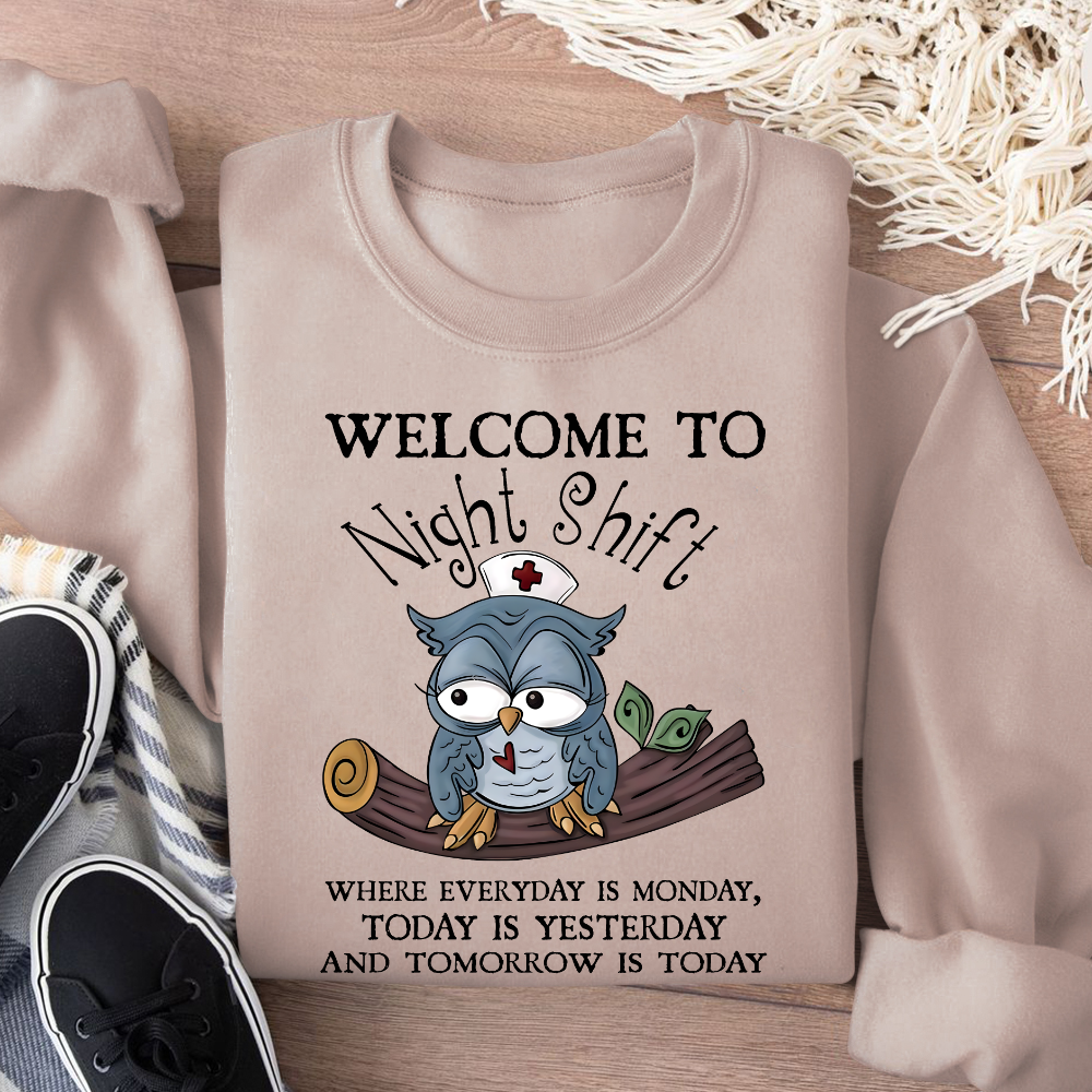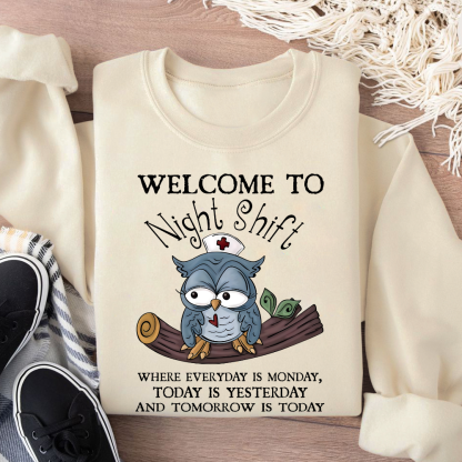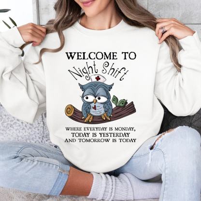 Welcome Come To Night Shift Cotton Pullover Sweatshirt