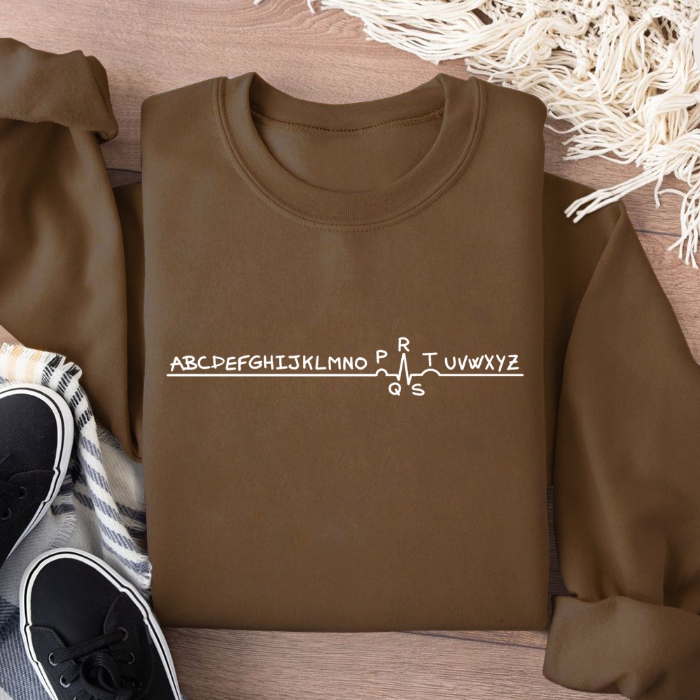 Electrocardiogram Alphabet Cotton Pullover Sweatshirt