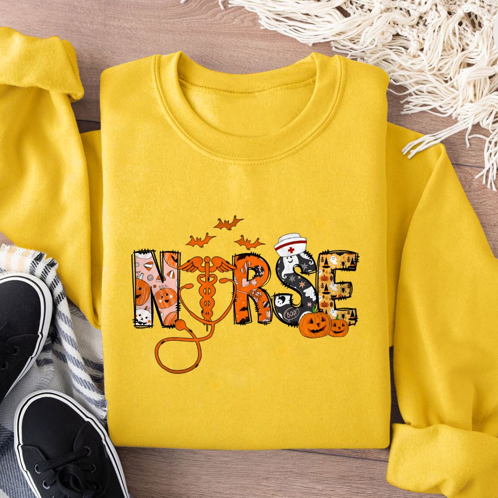 Pumpkin Spooky Nurse Halloween Cotton Pullover Sweatshirt