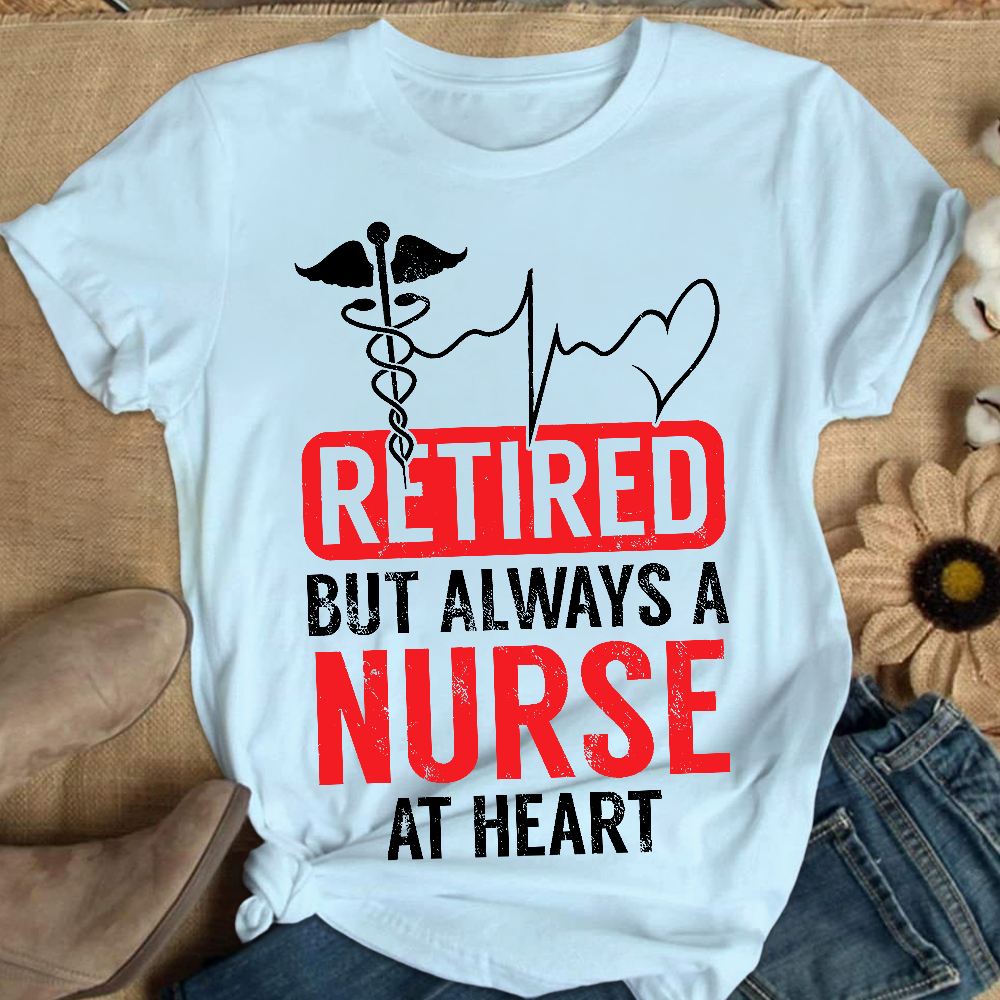Retired Always A Nurse At Heart Cotton Nurse T-shirt