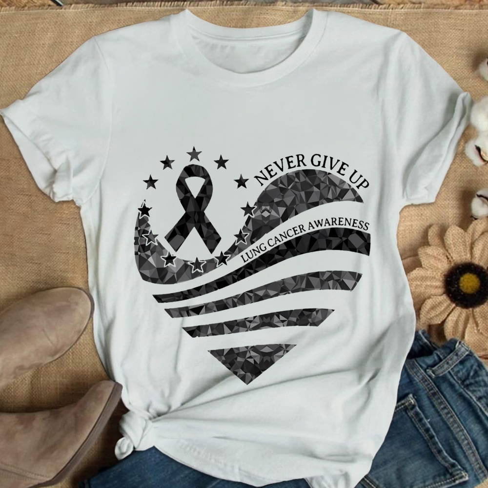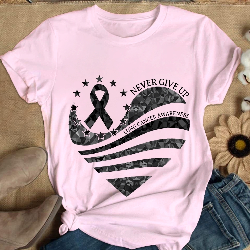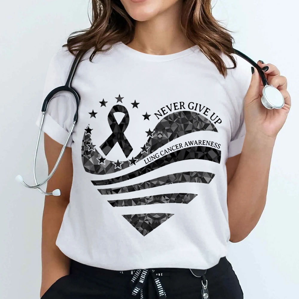 Never Give Up Lung Cancer Awareness Cotton Nurse T-shirt