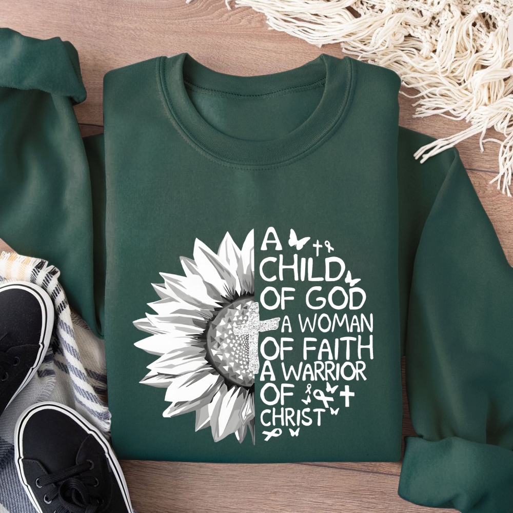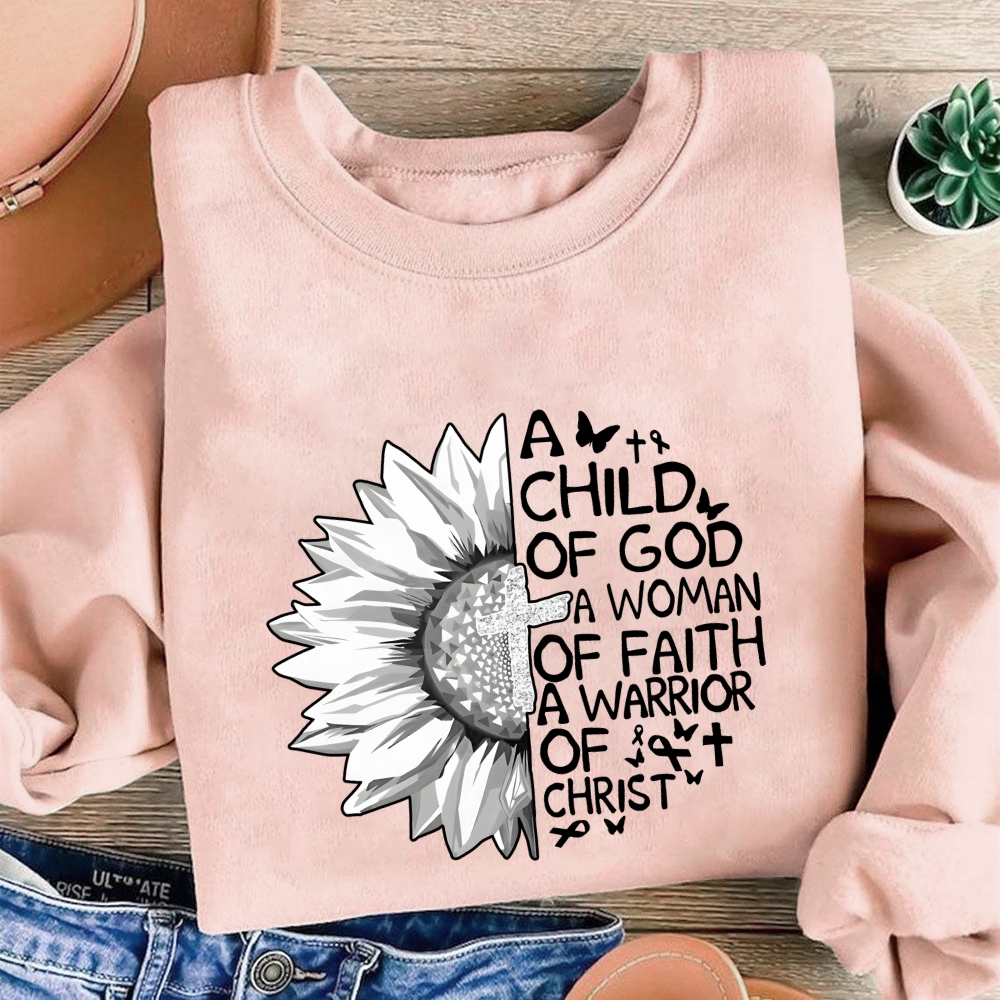 A Child Of God A Woman Of Faith A Warrior Of Christ Cotton Pullover Sweatshirt