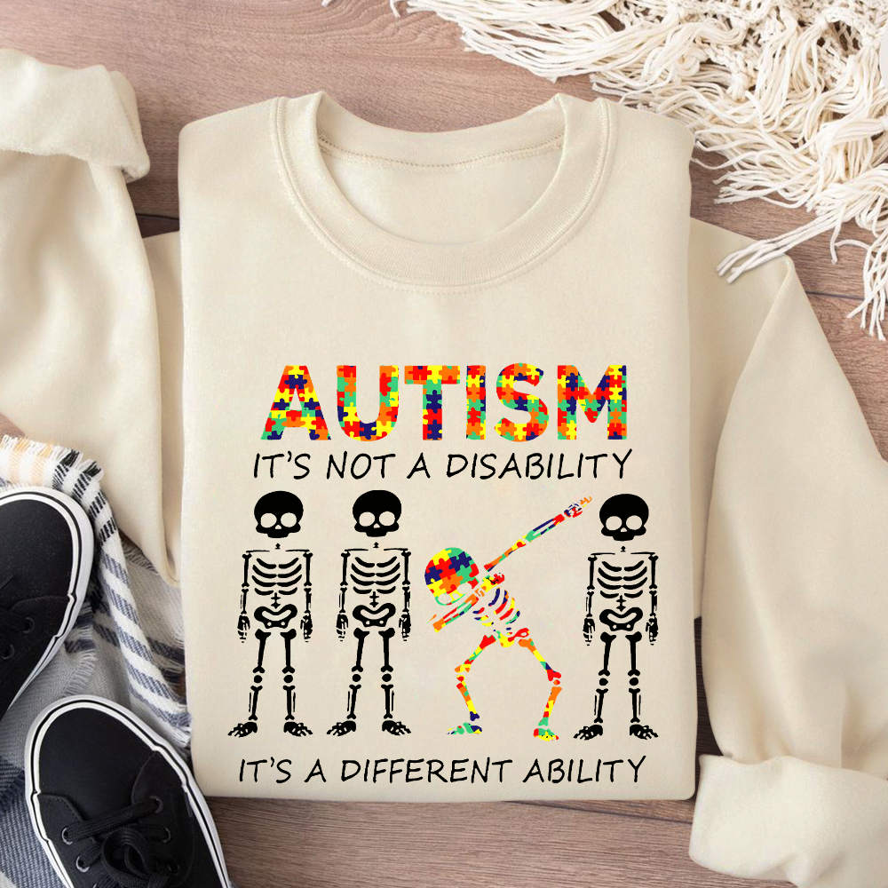 Skeleton Autism It's Not A Disability It's A Different Ability Cotton Pullover Sweatshirt