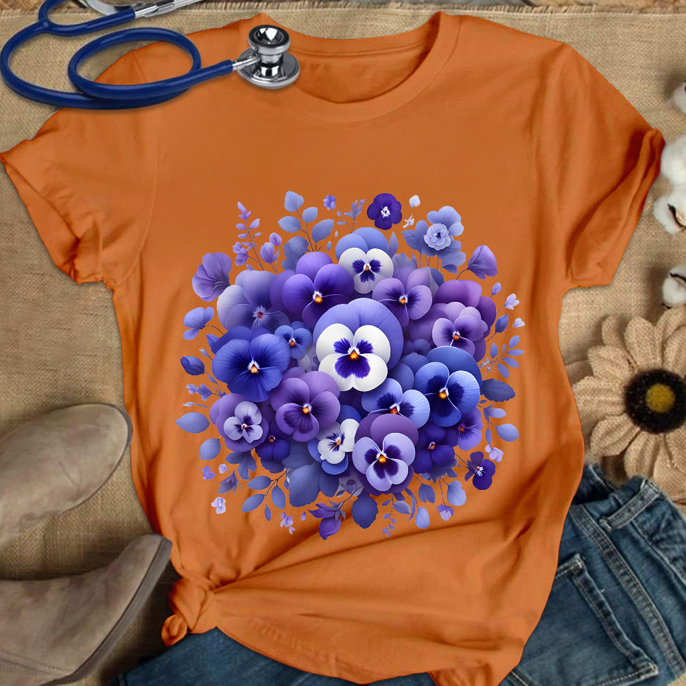 Alzheimer's Awareness Purple Floral Print Cotton Nurse T-shirt