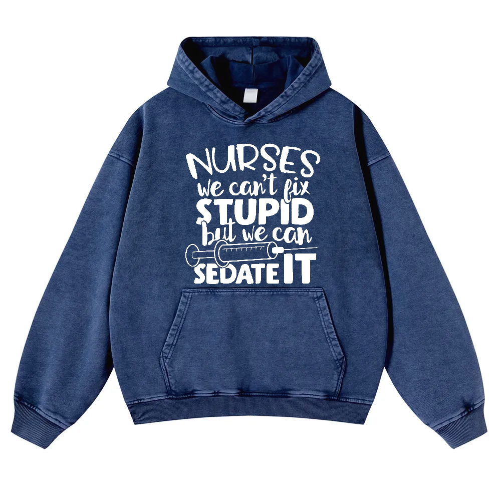 Nurses We Can't Fix Stupid But We Can Sedate It Vintage Washed Hoodie