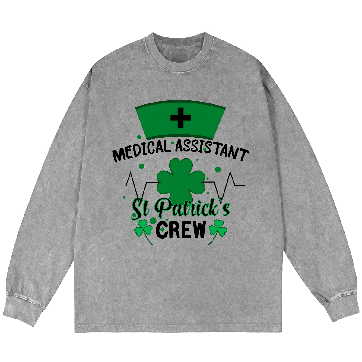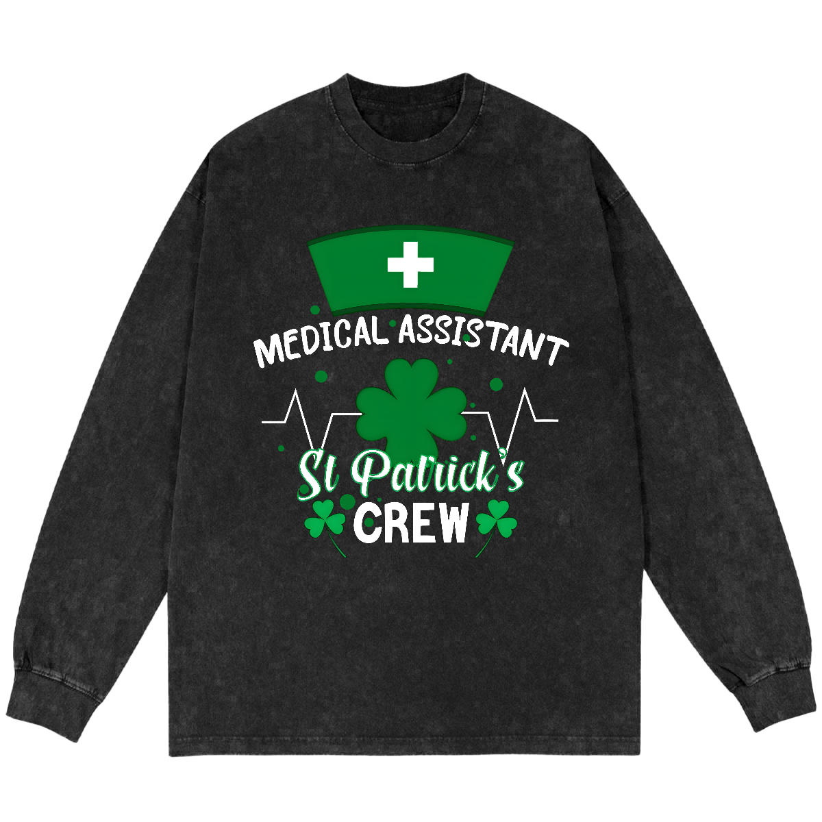 Medical Assistant St Patrick's Day Nurse Crew Vintage Washed Sweatshirts