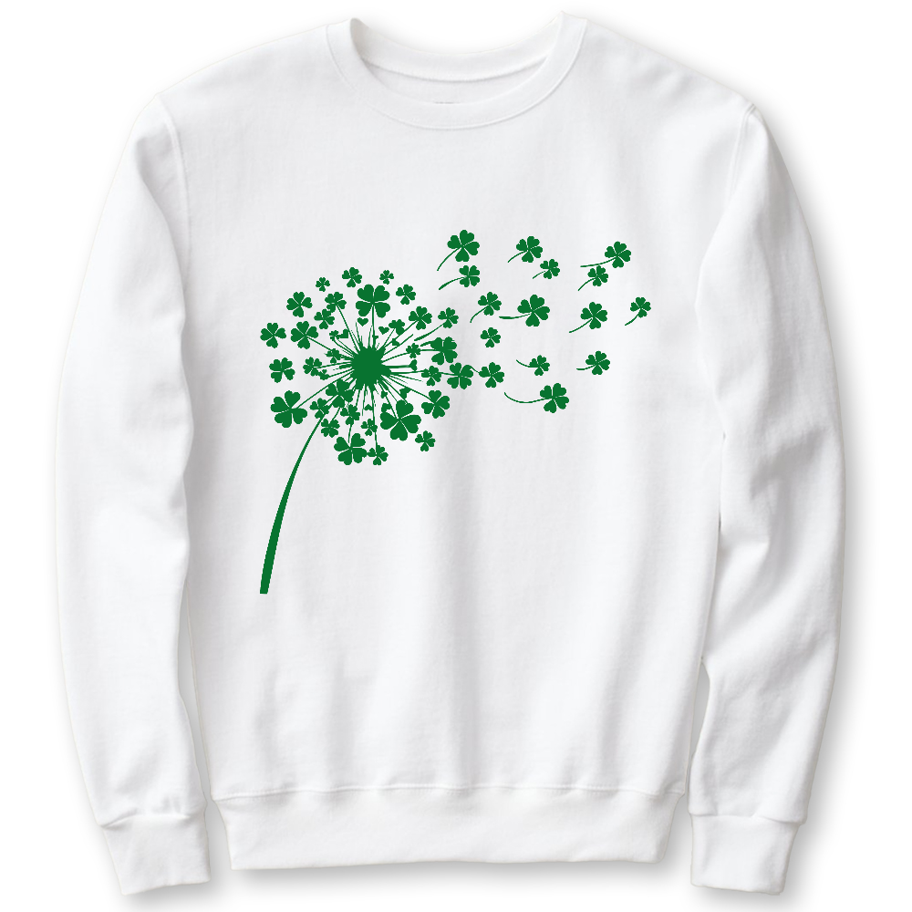 Green Shamrock Irish Clover St Patricks Day Cotton Pullover Sweatshirt