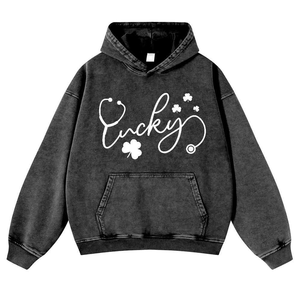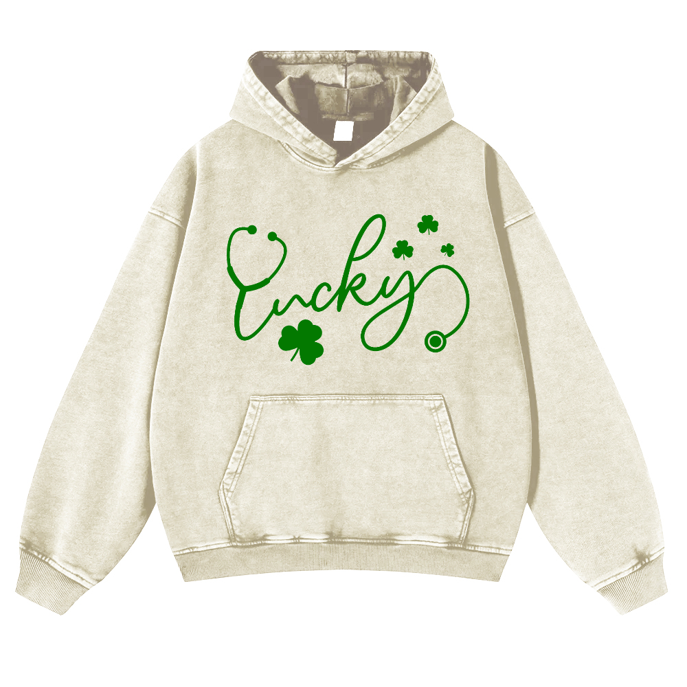 Nurse Stethoscope St Patrick's Day Vintage Washed Hoodie