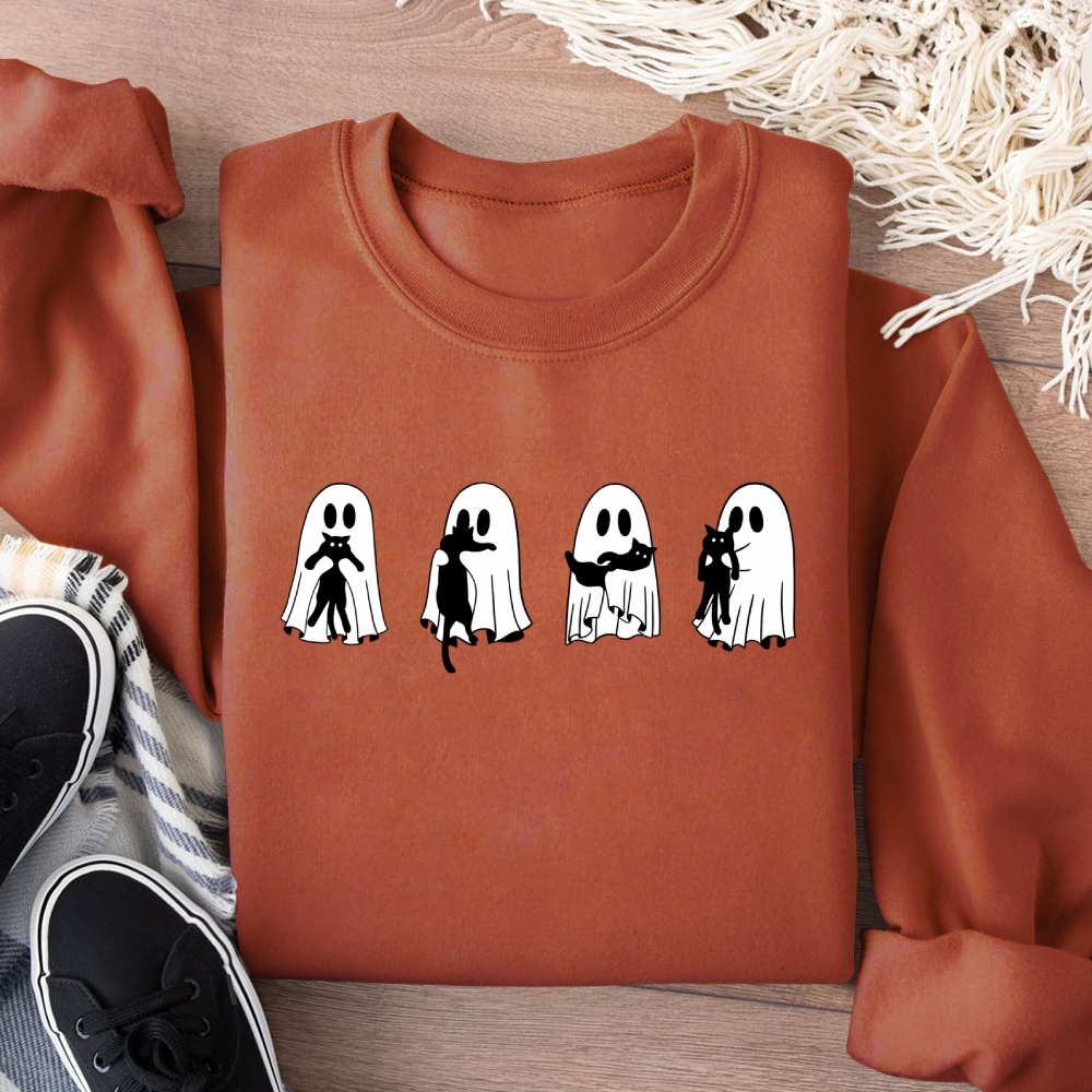 Ghost Cat Cotton Pullover Sweatshirt