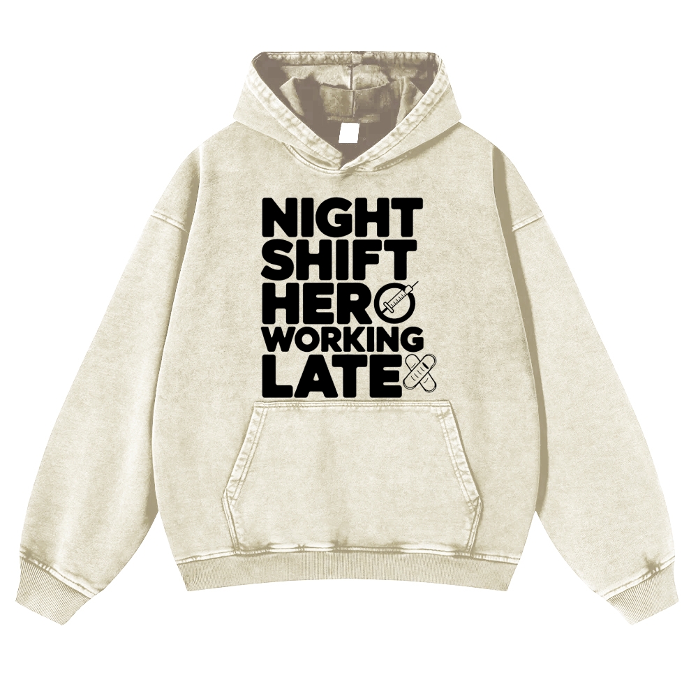 Night Shift Hero Working Late Vintage Washed Hoodie