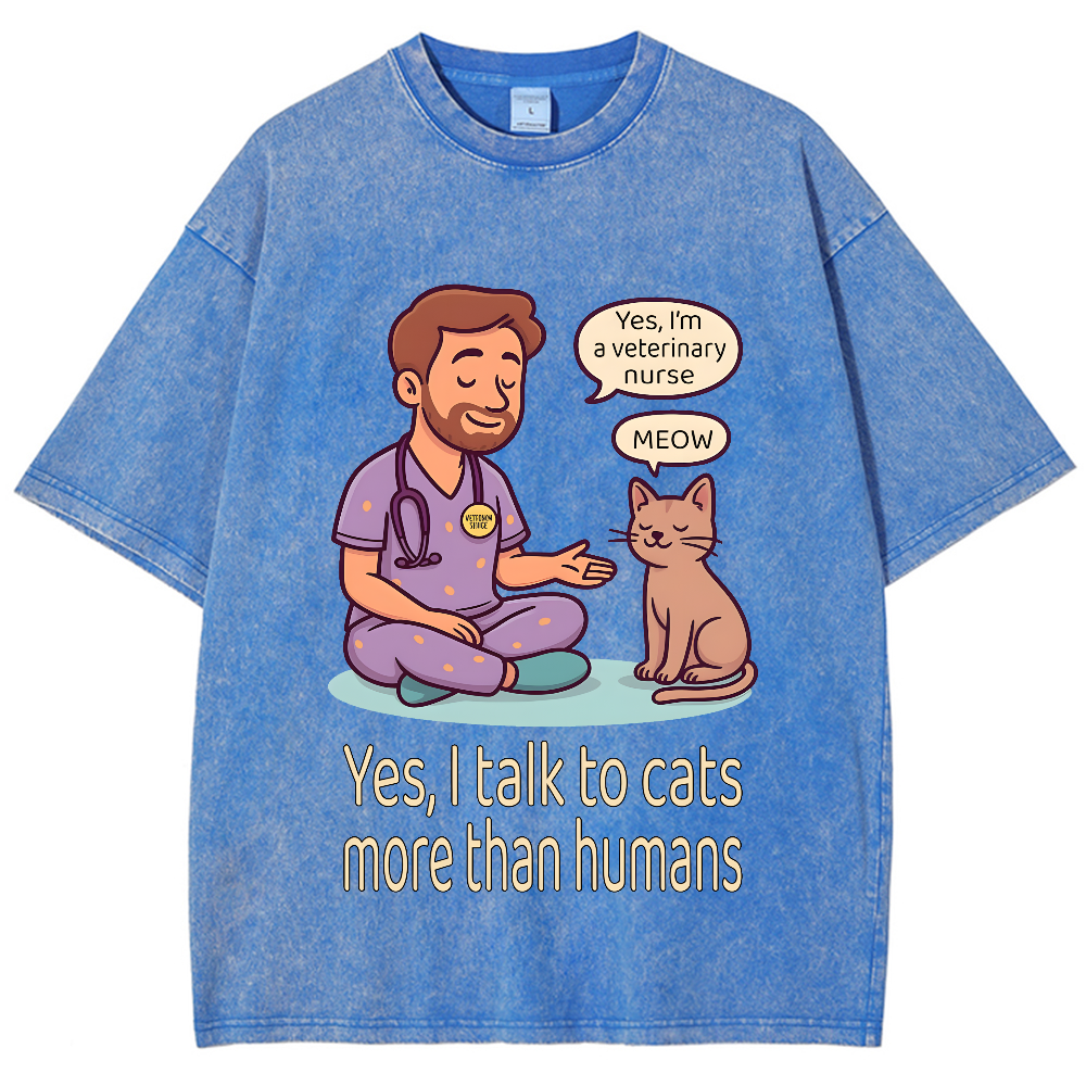 Veterinary Nurse Gift Yes I Talk To Cats More Than Humans Vintage Washed T-shirt