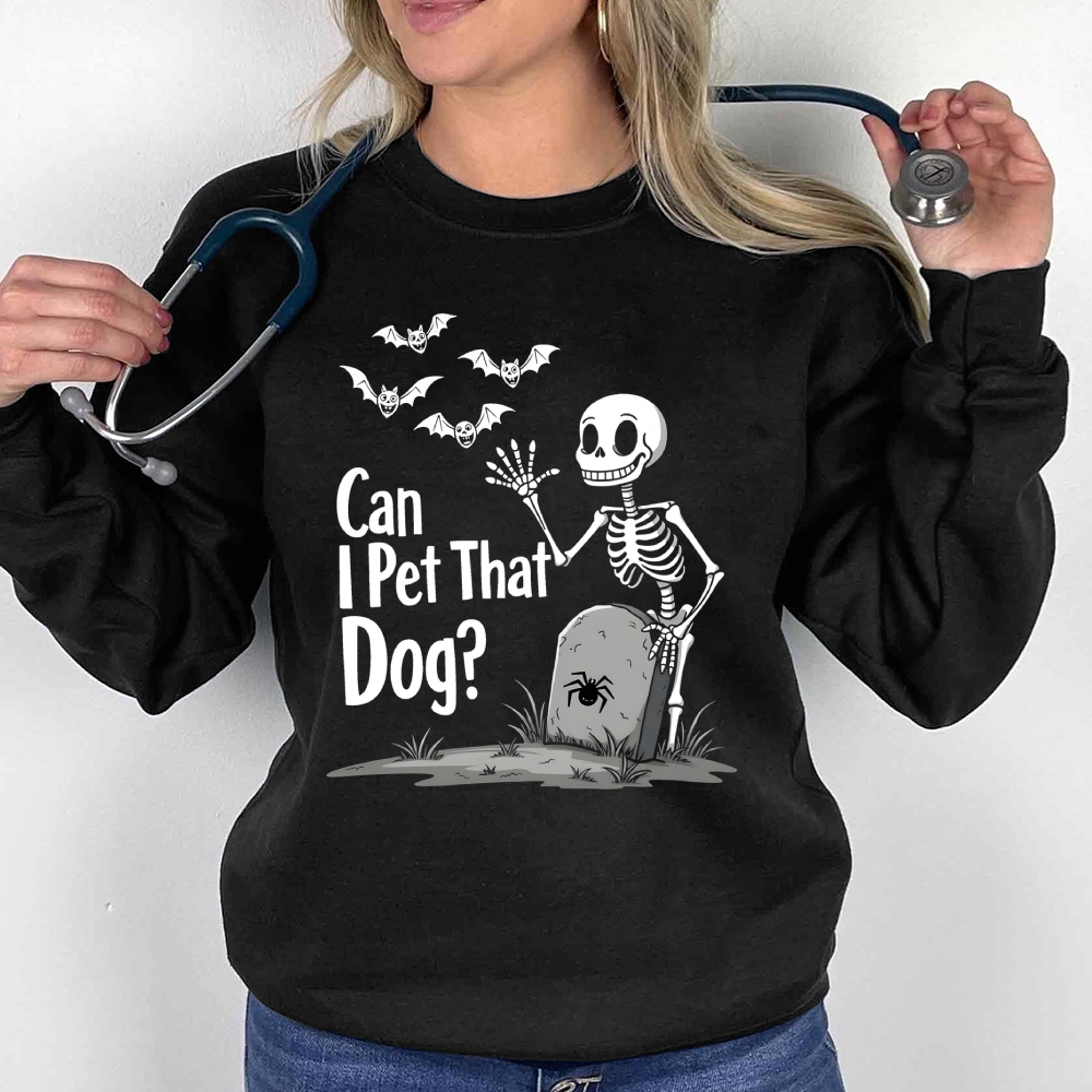 Spooky Skeleton Humor Can I Pet That Dog Halloween Cotton Pullover Sweatshirt