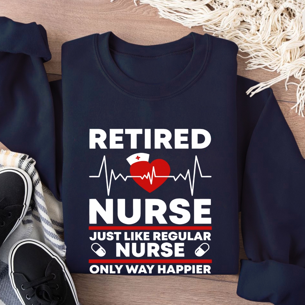 Retired Nurse Way Happier Cotton Pullover Sweatshirt