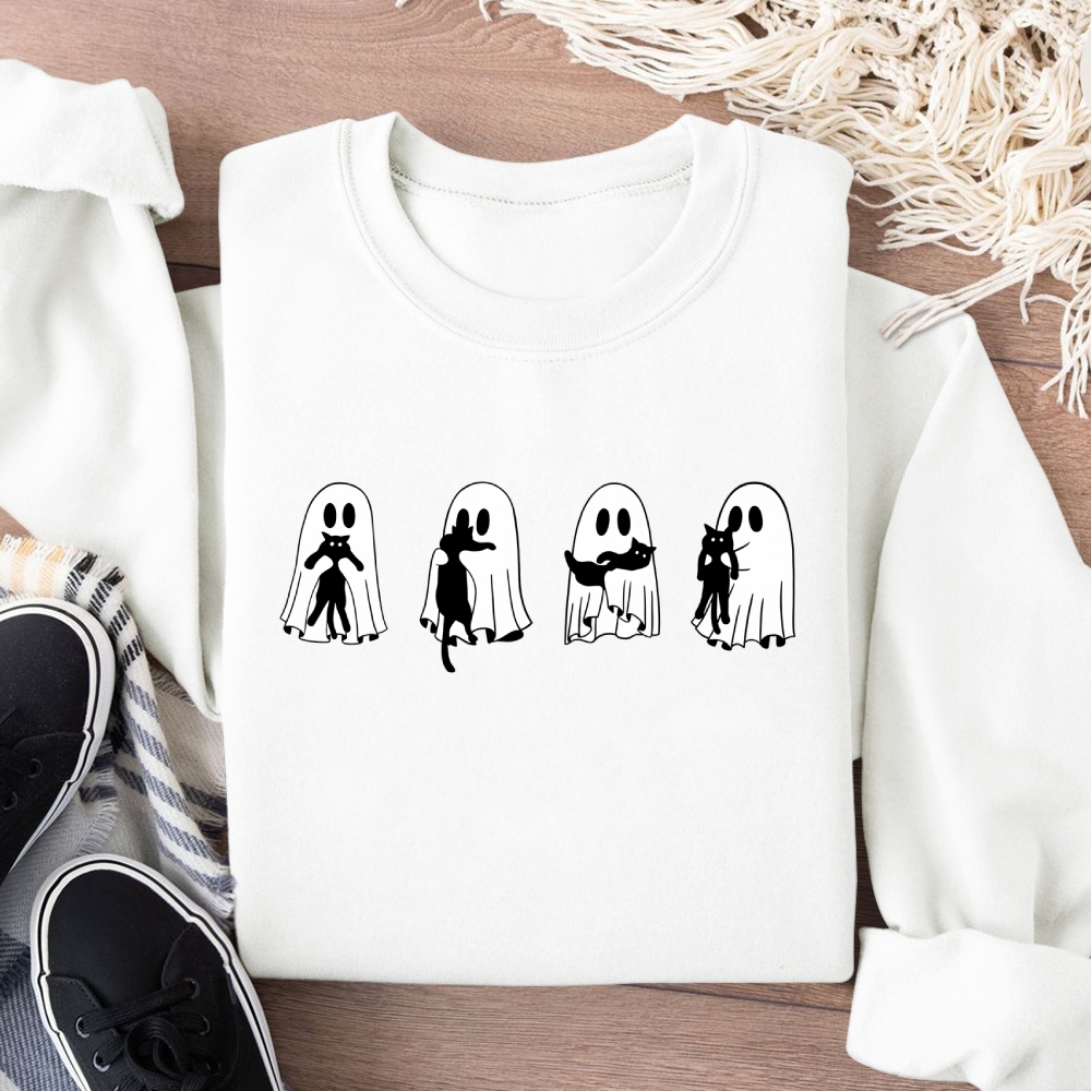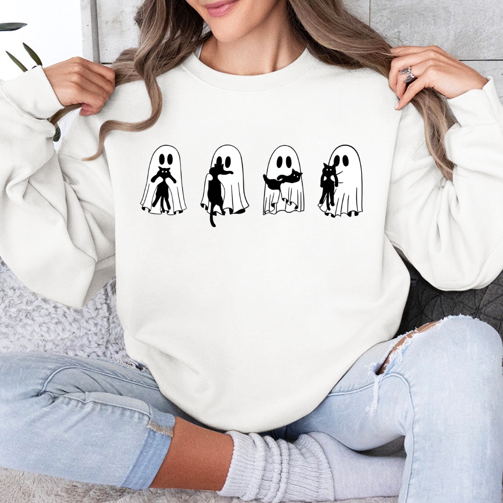 Halloween Beautifully Ghost Picture Breast Cancer Awareness Cotton Pullover Sweatshirt