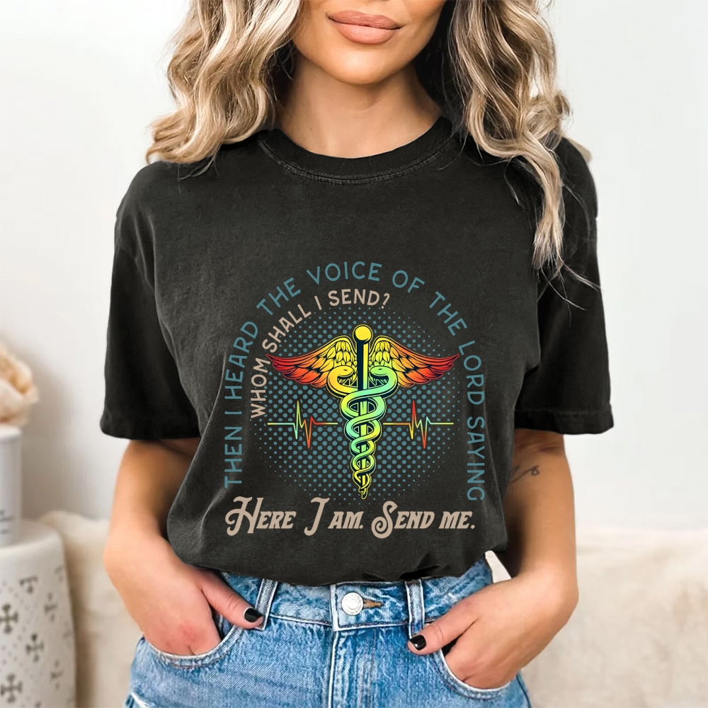 Nurse Then I Heard The Voice Of The Lord Saying Whom Shall I Send Vintage Washed T-shirt