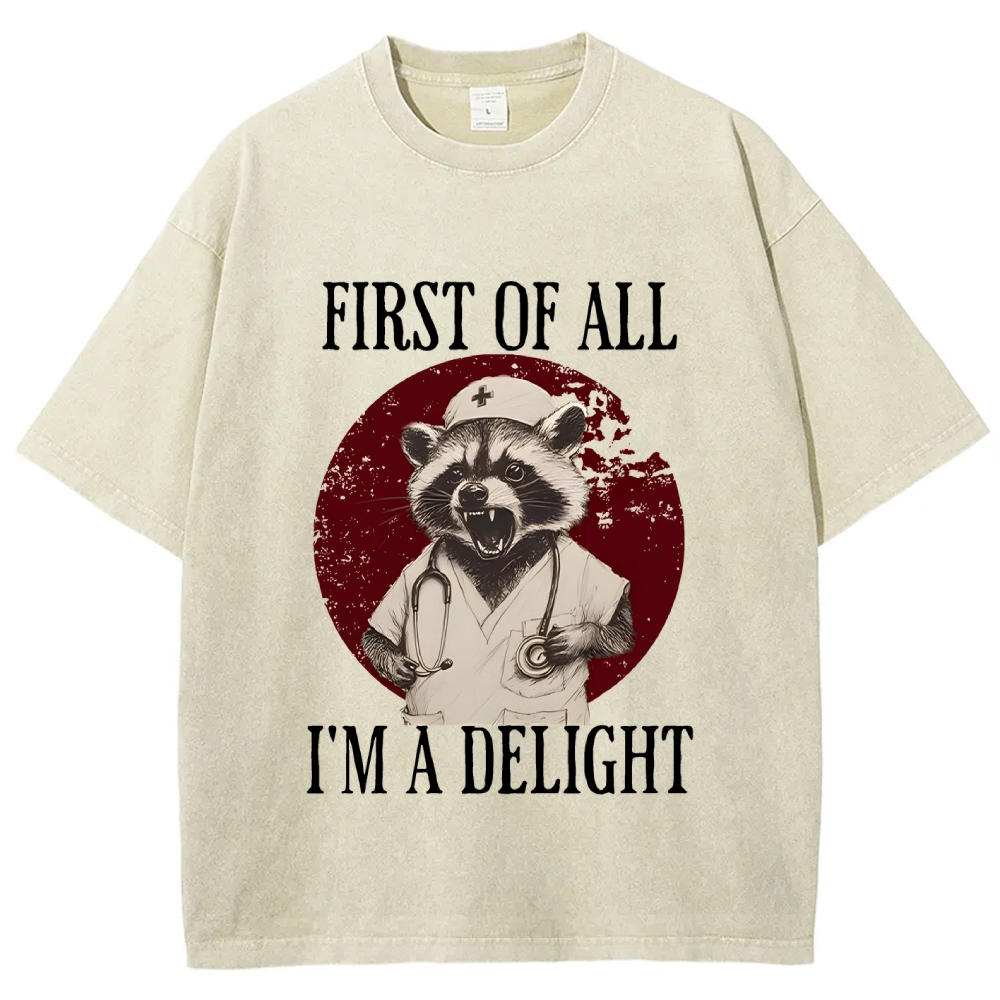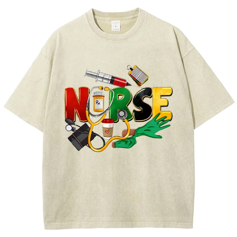 Interesting Geometric Pattern Nurse Text Vintage Washed T-shirt