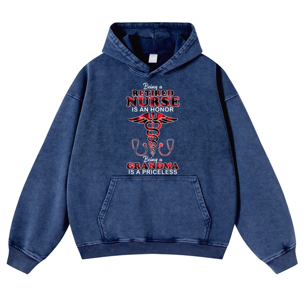 Being A Retired Nurse Is An Honor Being A Grandma Vintage Washed Hoodie