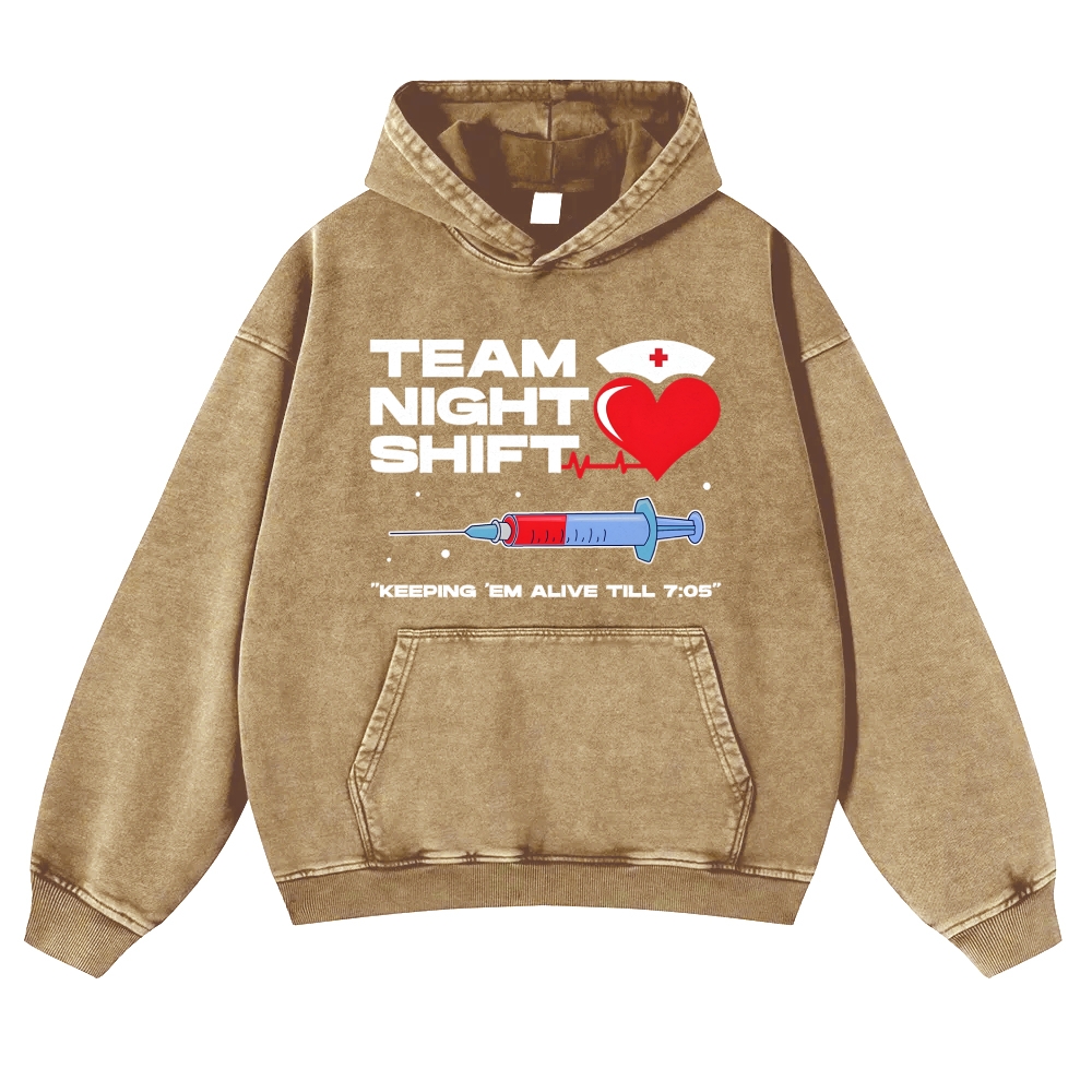 Team Night Shift Keeping Em Alive Till 7:05 Vintage Washed Hoodie