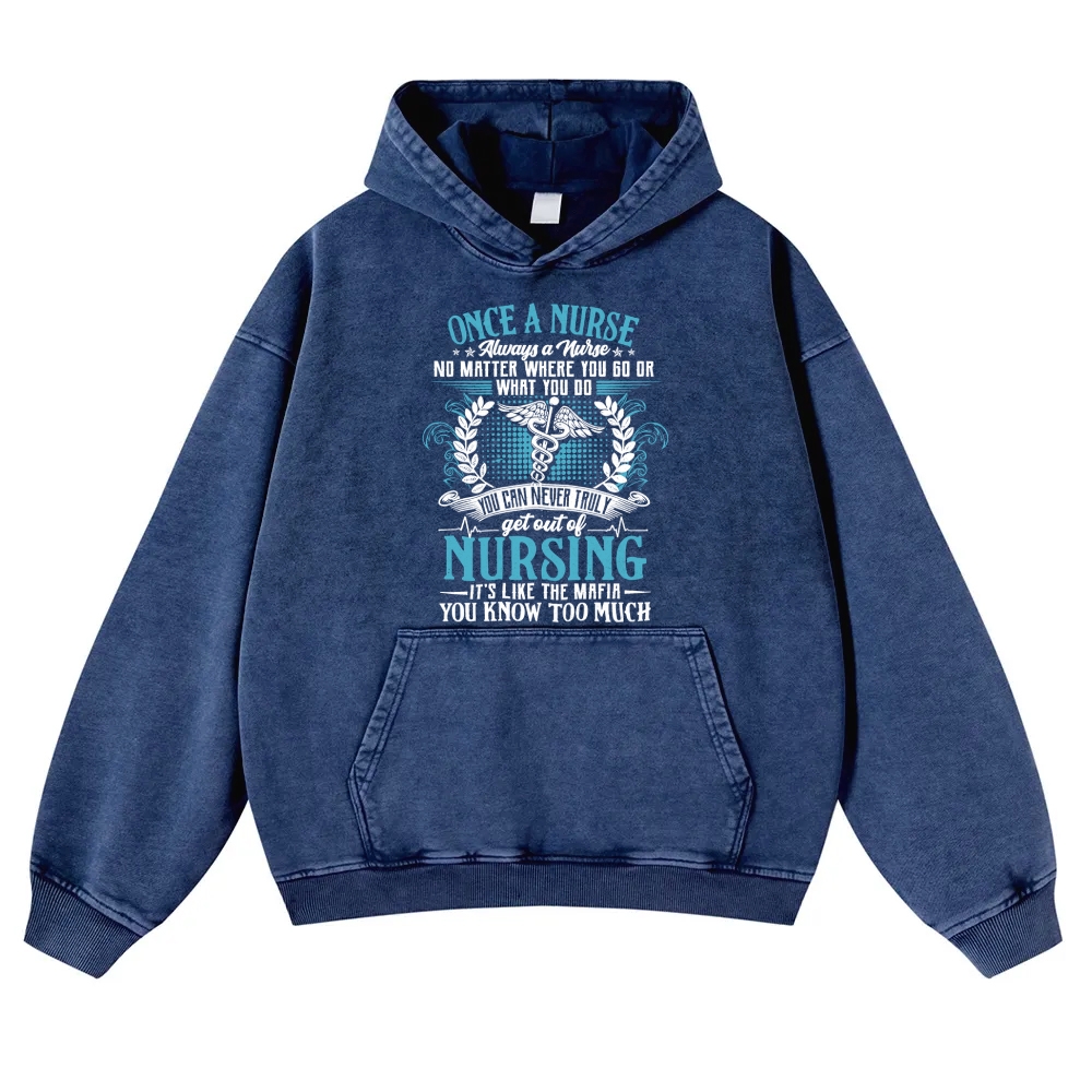Once A Nurse Always A Nurse No Matter Vintage Washed Hoodie