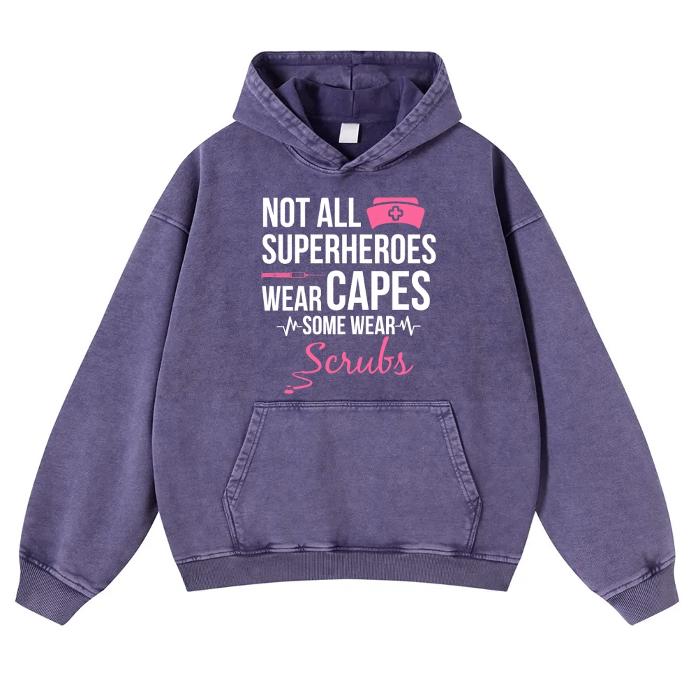 Not All Superheroes Wear Capes Some Wear Scrubs Vintage Washed Hoodie