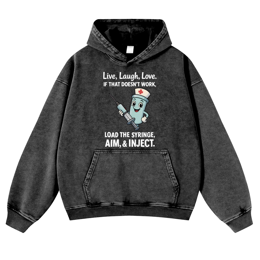 Load The Syringe Aim Inject Vintage Washed Hoodie