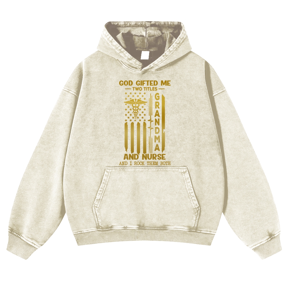 God Gifted Me Two Titles Grandma And Nurse And I Rock Them Both Vintage Washed Hoodie