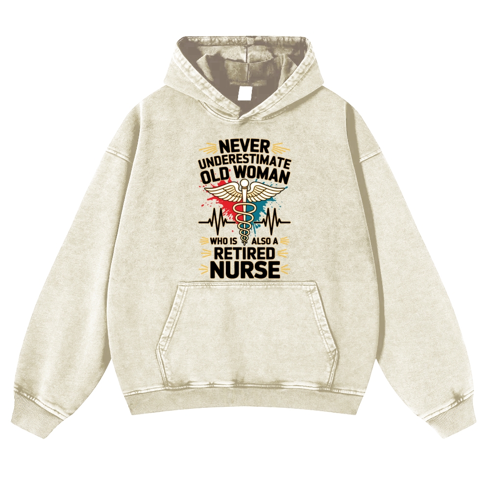 Never Underestimate An Old Woman Who Is Also A Retired Nurse Vintage Washed Hoodie