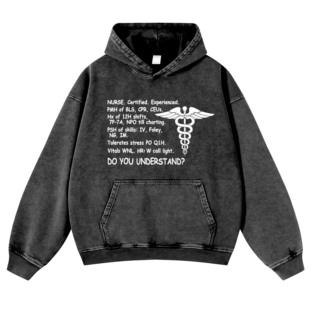 Night Shift Certified Nursing Assistant Vintage Washed Hoodie