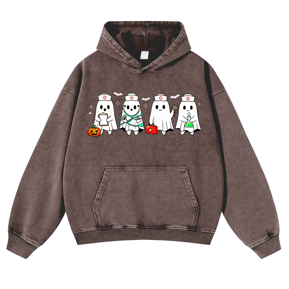 Cute Ghost Nurse Halloween Vintage Washed Hoodie