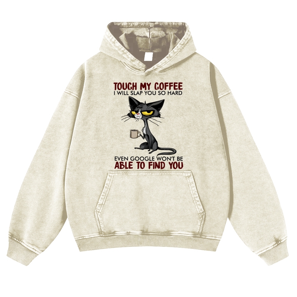Cat Drinking Coffee Touch My Coffee I Will Slap You Vintage Washed Hoodie