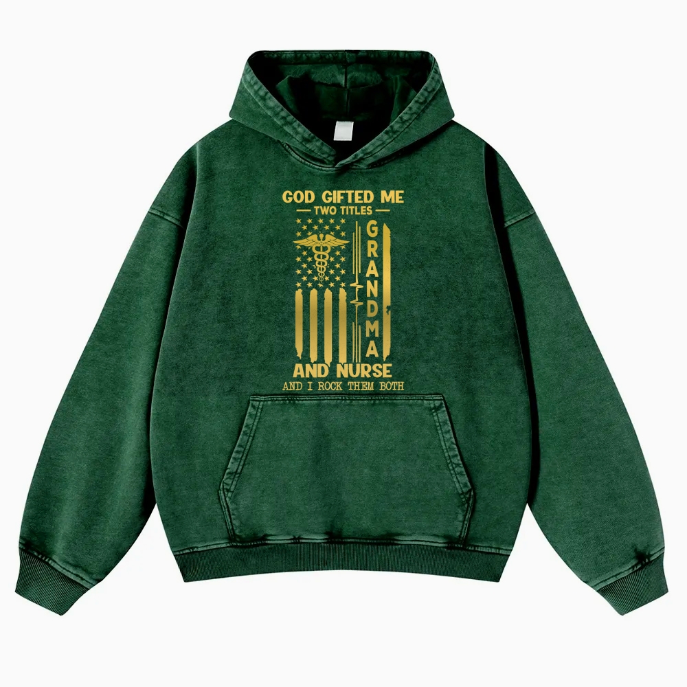 God Gifted Me Two Titles Grandma And Nurse And I Rock Them Both Vintage Washed Hoodie
