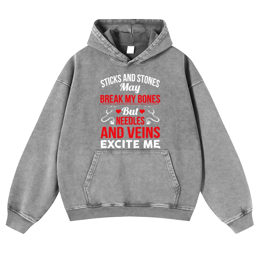 Needles and Veins Excite Me Vintage Washed Hoodie