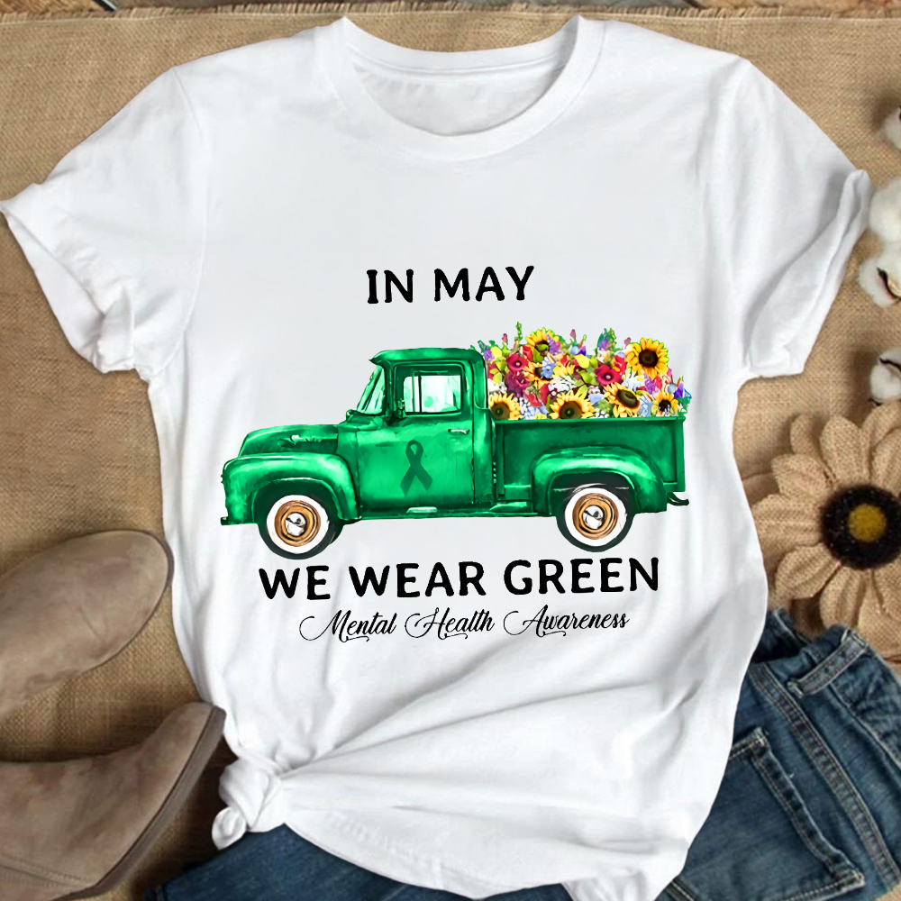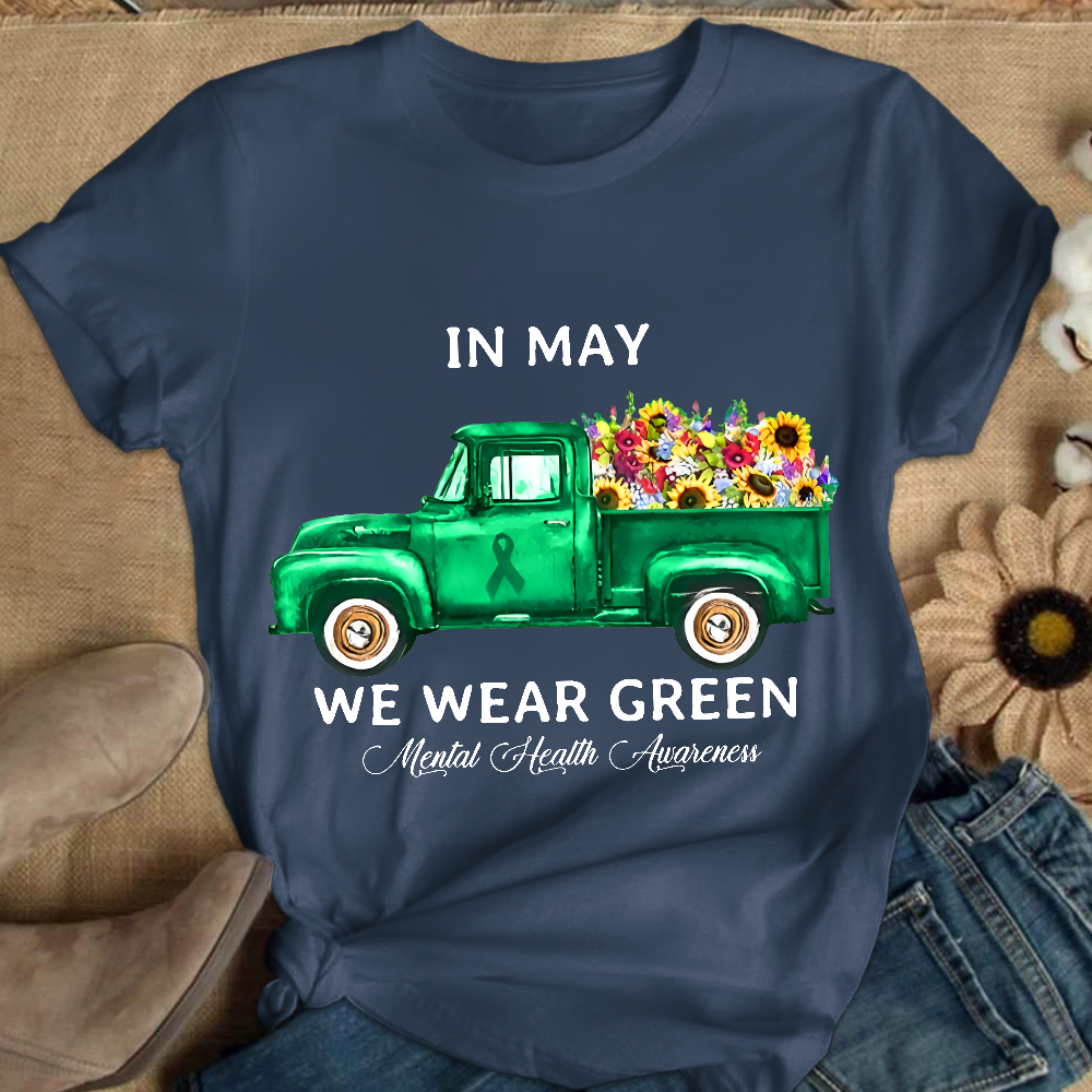 In May We Wear Green Mental Health Awareness Cotton Nurse T-shirt