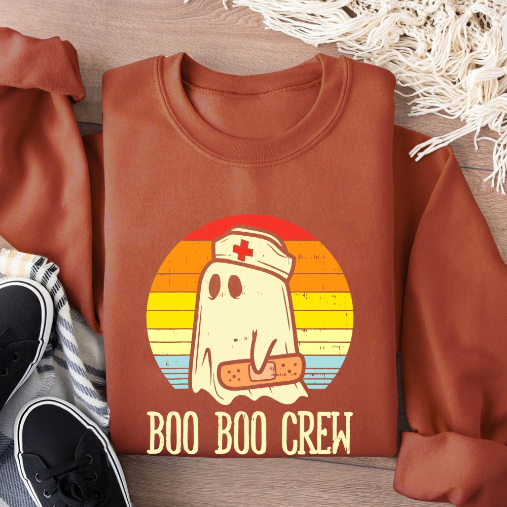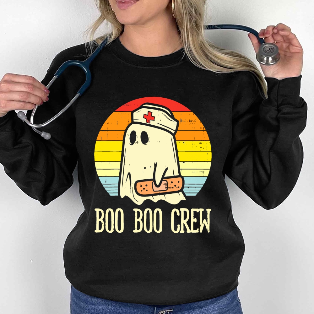 Boo Boo Crew Funny Nurse Halloween Ghost Costume Gift Cotton Pullover Sweatshirt