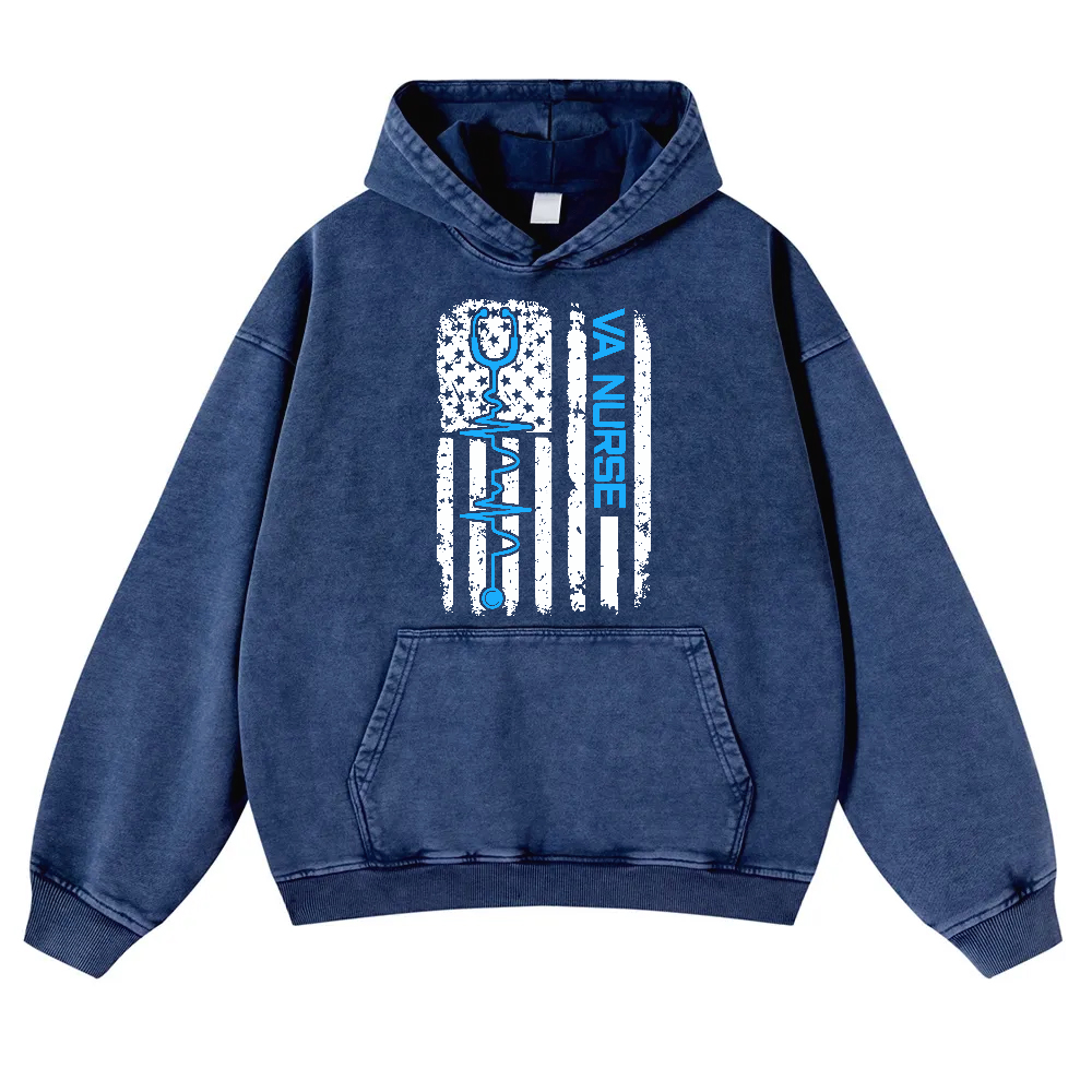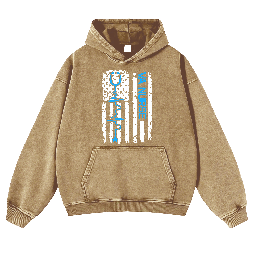 Vintage USA American Flag VA Nurse Patriotic Nursing Gifts Vintage Washed Hoodie
