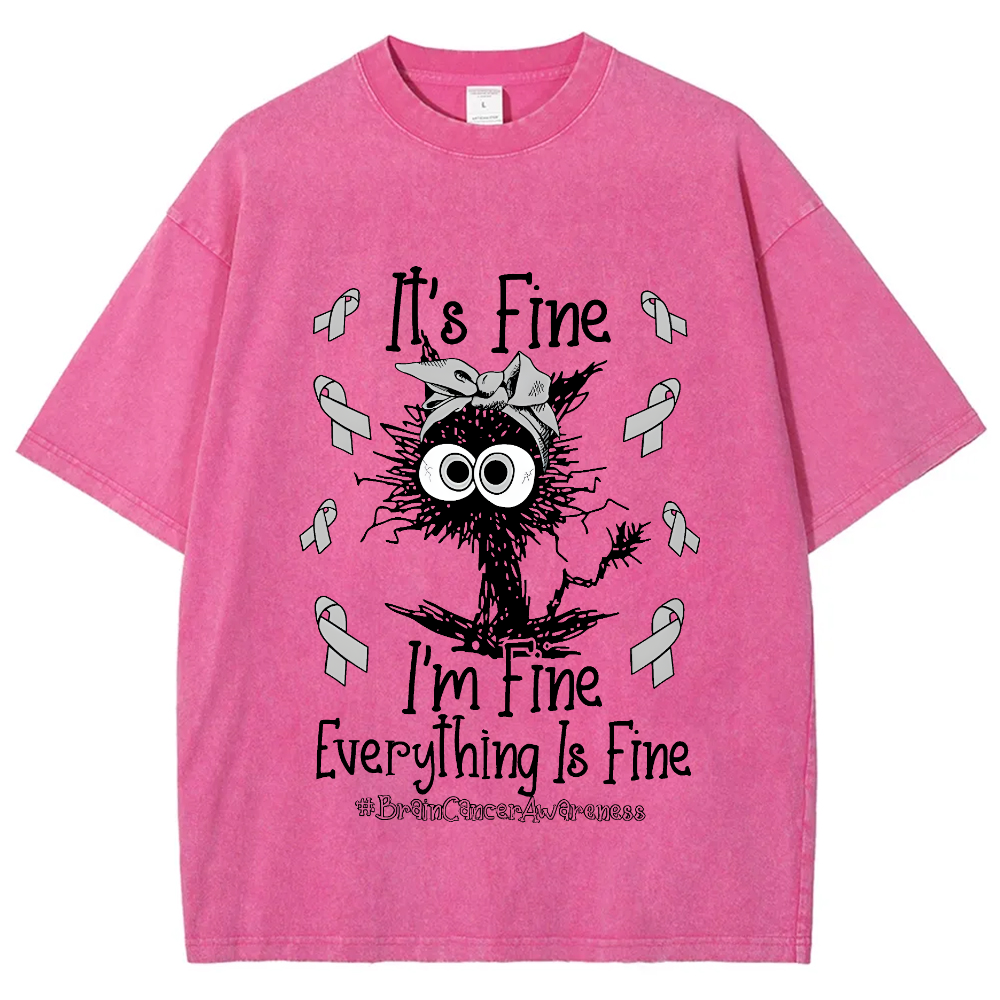 It's Fine I'm Fine Everything Is Fine Brain Cancer Awareness Vintage Washed T-shirt