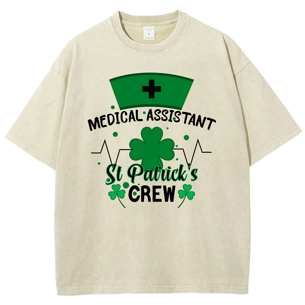 Medical Assistant St Patrick's Day Nurse Crew Vintage Washed T-shirt