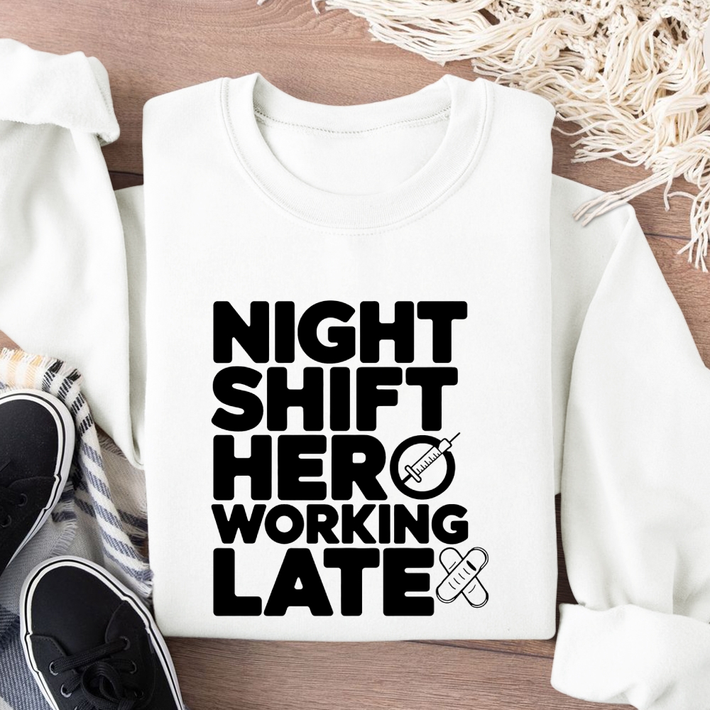 Night Shift Hero Working Late Cotton Pullover Sweatshirt