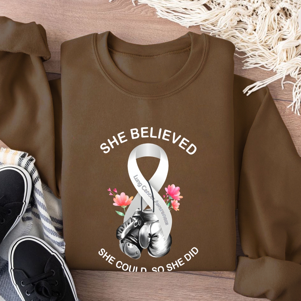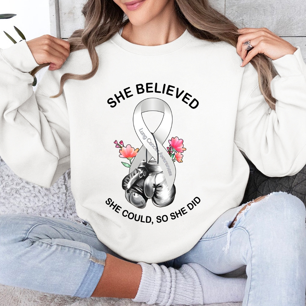 She Believed She Could So She Did Lung Cancer Awareness Cotton Pullover Sweatshirt